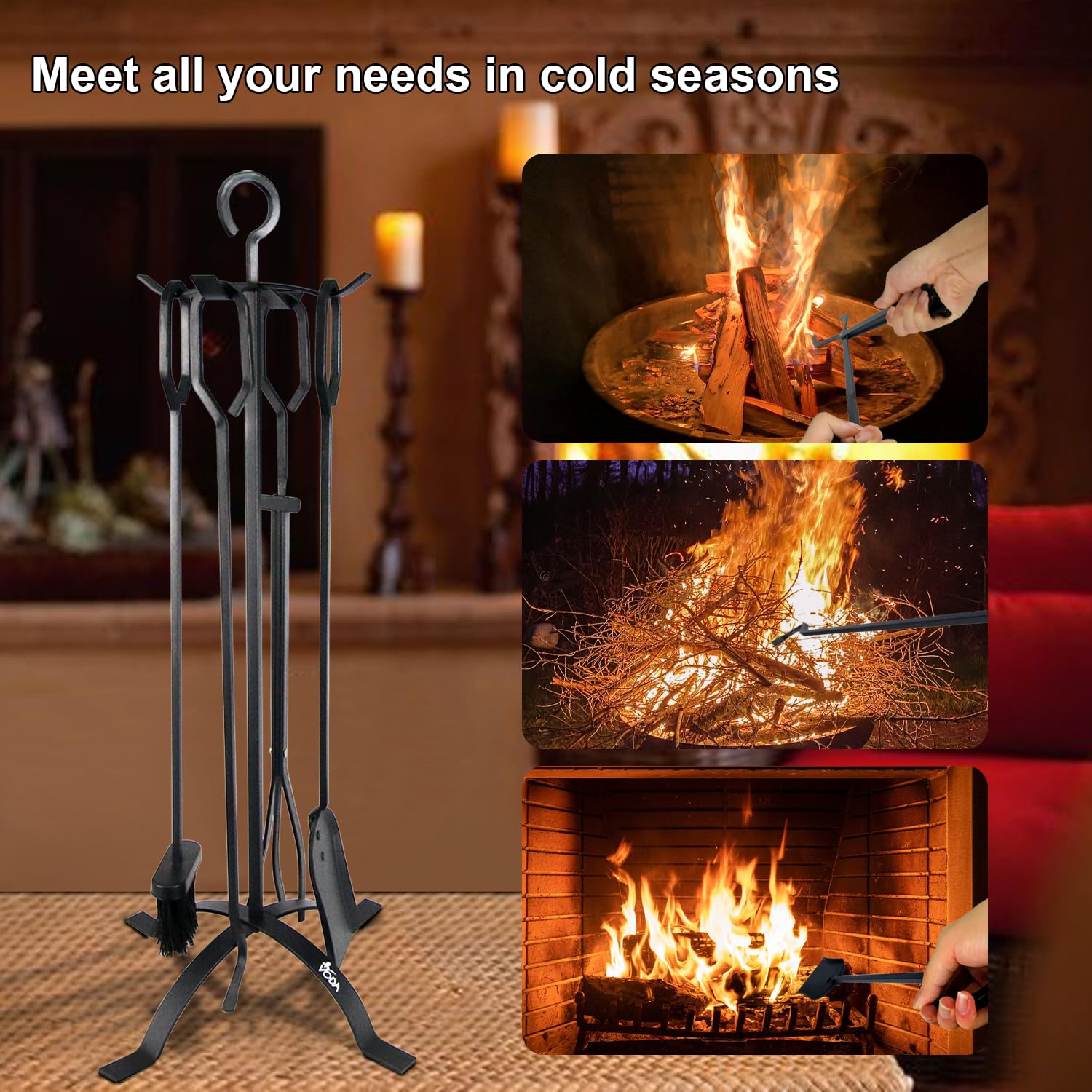 - Suitable for Most Fireplaces:This fireplace tools set offers all you need for an organized and attractive hearth. Measures 30.5 inch high fire place tools sets, works great with most fireplace screens, fireplace log holders and firewood logs racks, fireplace ash buckets, fireplace bellows, fireplace grates or outdoor fire pit tools.