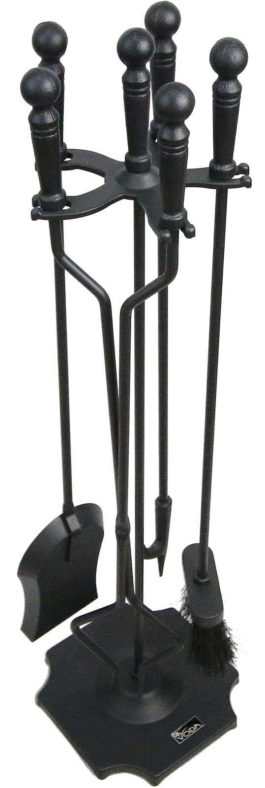 - Multi-Function Tools- This black fireplace accessories set, and fire fireplace decoration toolset includes a sturdy stand with a heavy base, brush broom, antique shovel, tong, and fire pit poker. Each of them has a firm handle with an orb at the top. This sturdy fireplace tools set can serve your indoor/outdoor fireplace, stone stove, or wood stove for a long time.
