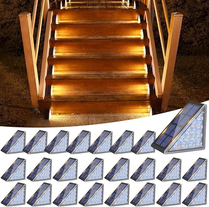 Solar Step Lights for Outside, Solar Stair Lights Outdoor Waterproof IP67, LED Outdoor Step