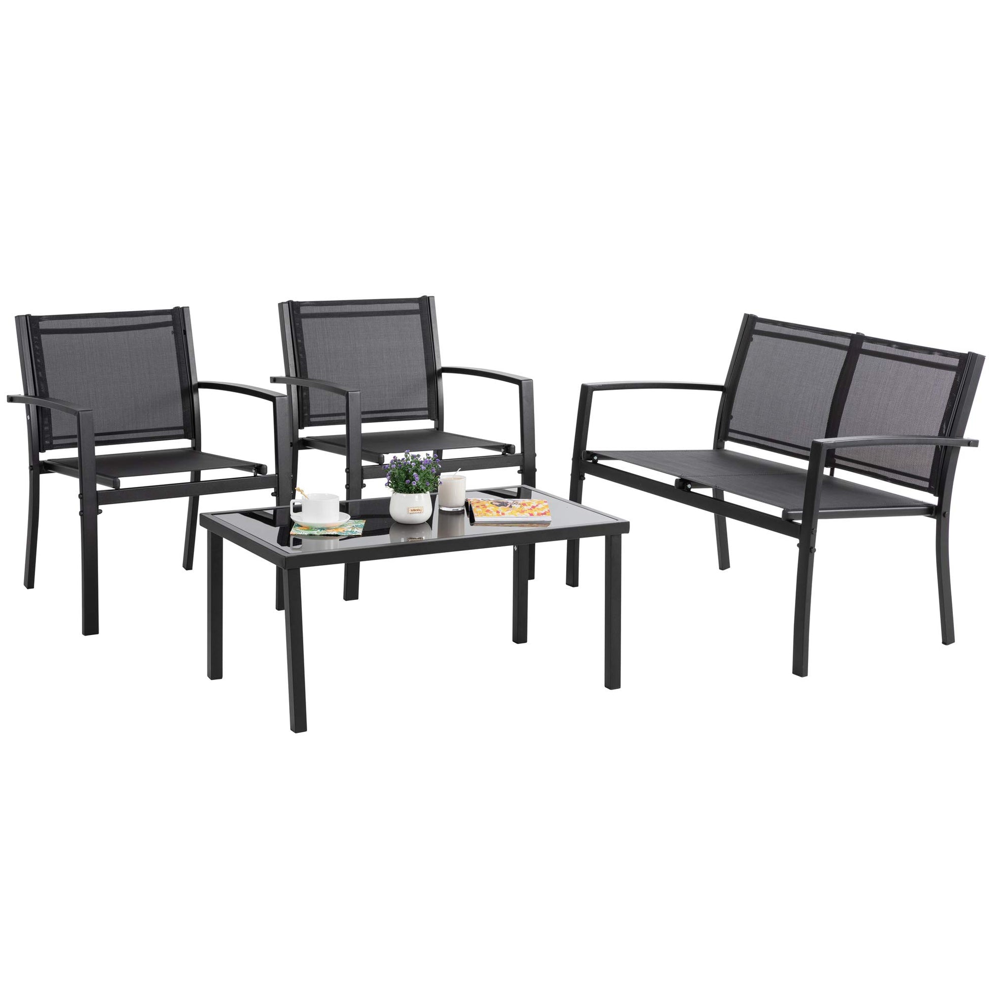 - Sturdy & Durable Material: This 4-piece patio furniture set is made of sturdy powder-coated steel tubing. Waterproof, corrosion-resistant, and strong enough to provide you with sturdy and stable support. It will stay with you for many years without much effort.