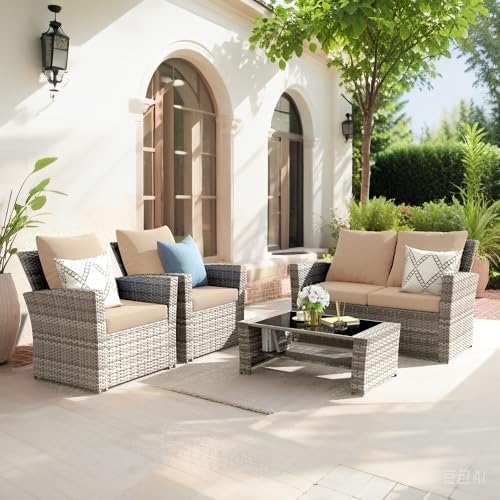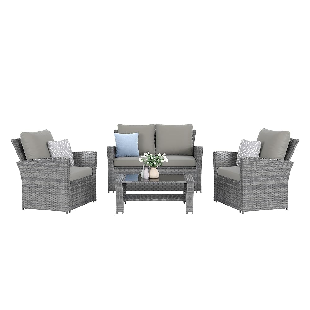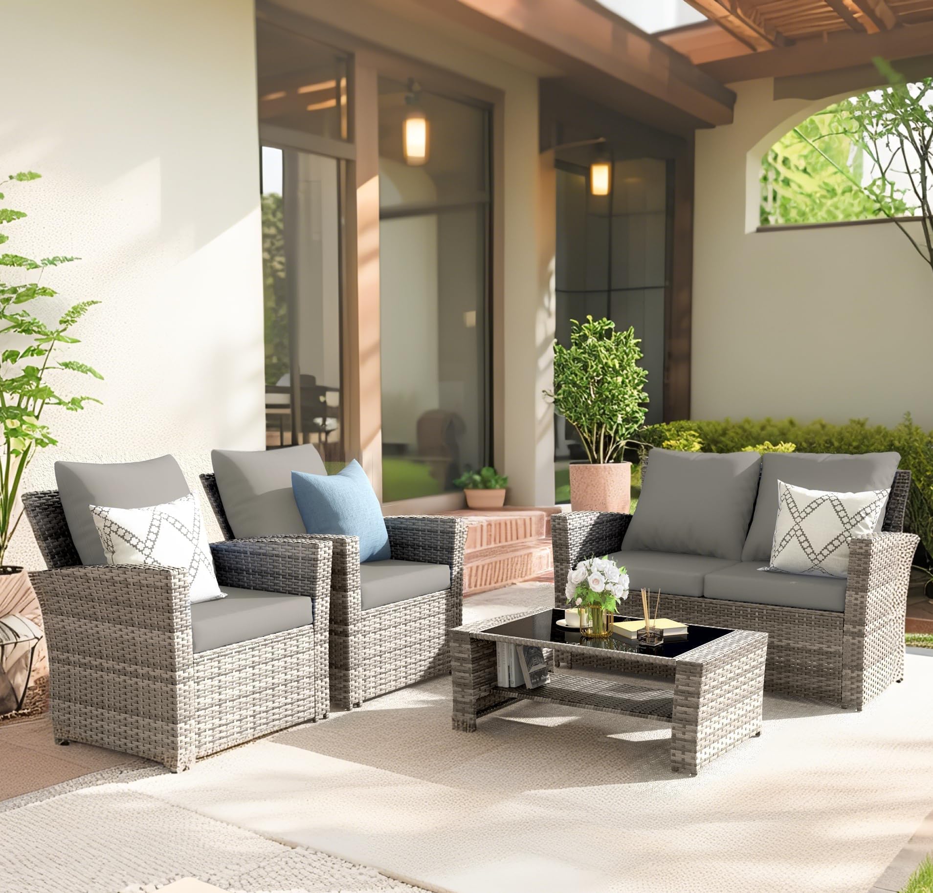 4-Piece Grey Waterproof PE Wicker Outdoor Sectional Sofa Set