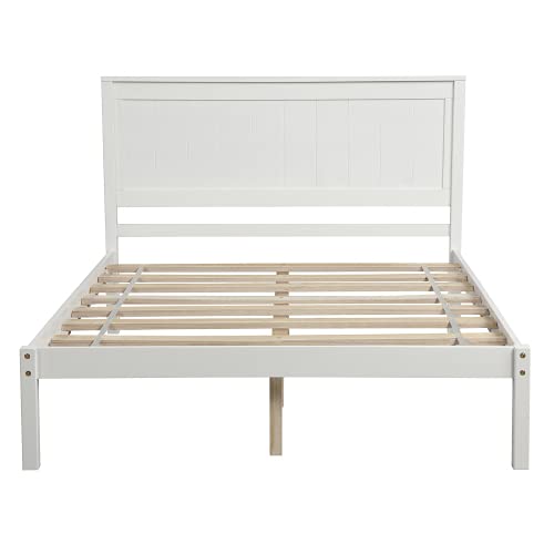 Rustic Style Wooden Bed with Wood Slat Support, No Box Spring Needed, Full Size, White