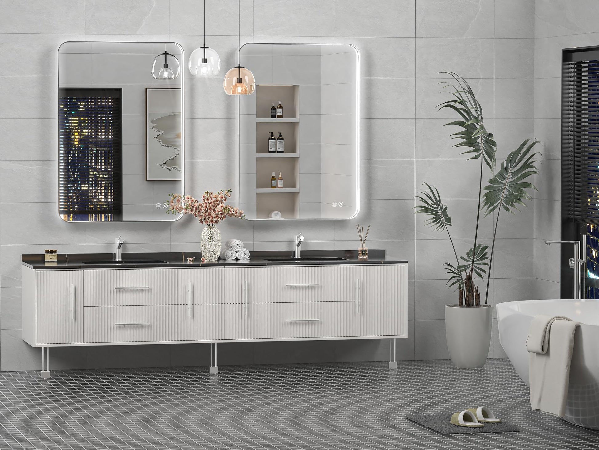 - say goodbye to foggy mirrors! The big bathroom mirror is designed with an anti-fog coating, providing a clear reflection even in the steamiest bathroom conditions. Made with high-definition silver glass, it delivers sharp and distortion-free reflections, offering unparalleled clarity and quality.