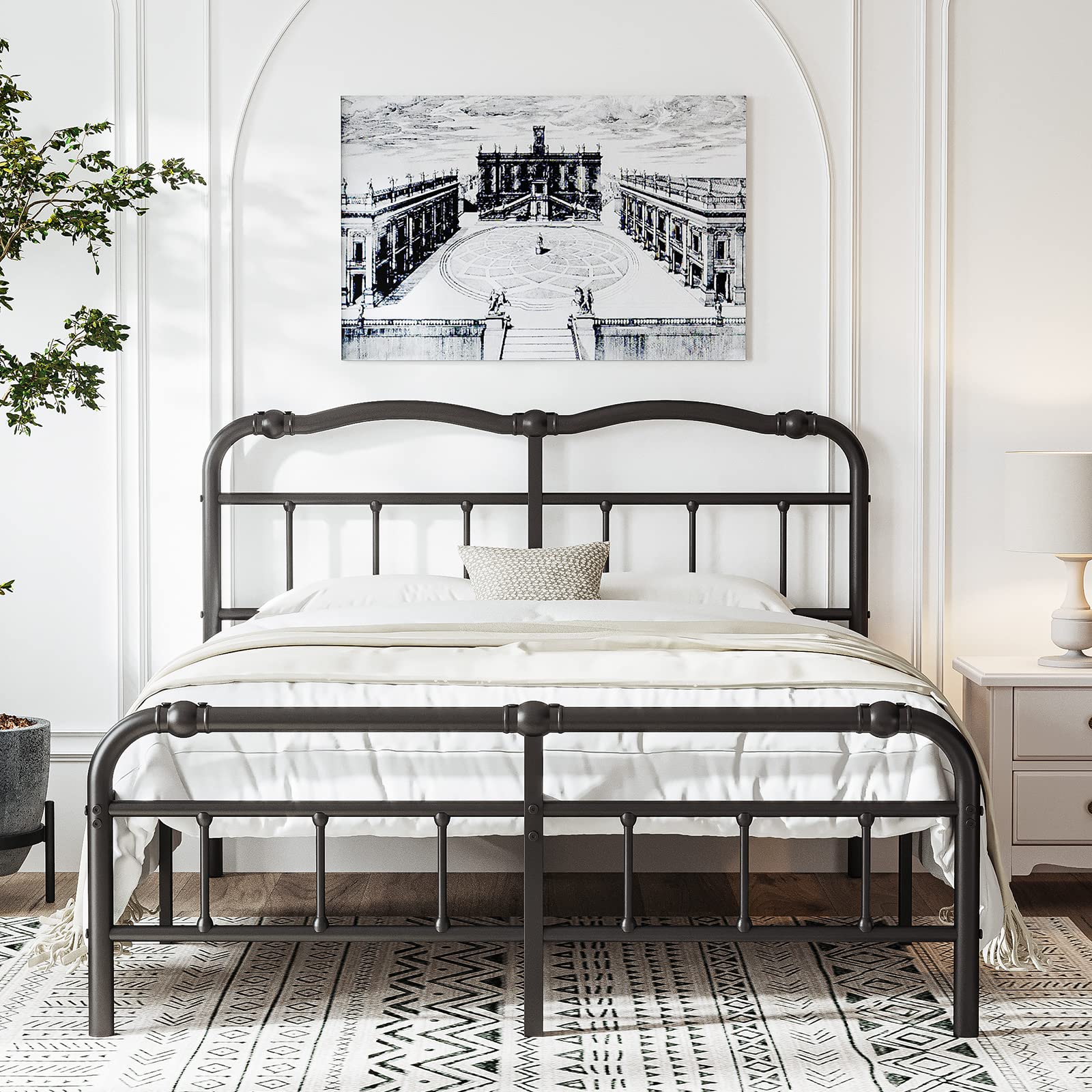 - Headboard and footboard: Retro and classic wavy line headboard design,making your room a warm and comfortable feeling. The thick tubular headboard and footboard is great for avoid the mattress from rocking and swaying.