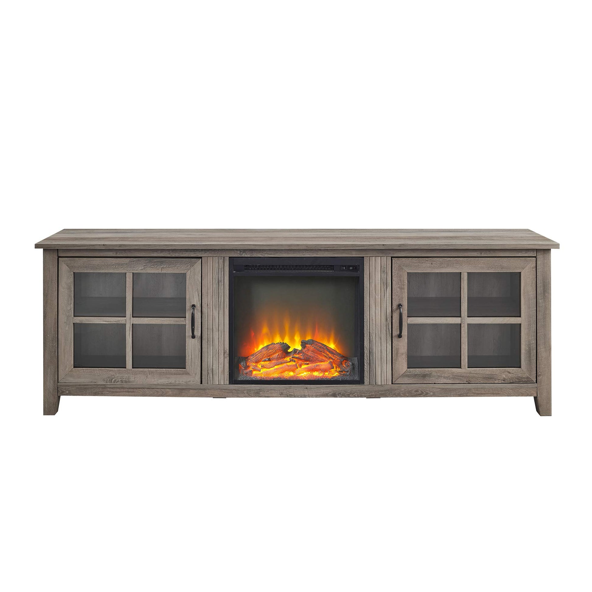 Bern Classic 2 Glass Door Fireplace TV Stand for TVs up to 80 Inches, 70 Inch, Grey Wash