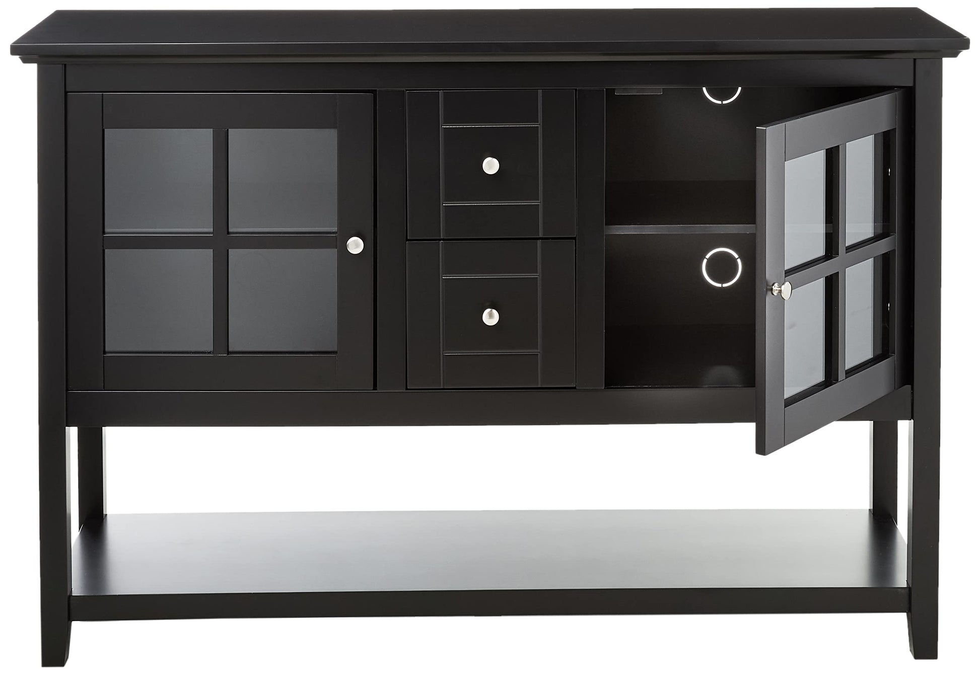 Charlotte Classic Glass Door Storage Buffet, 52 Inch, Black