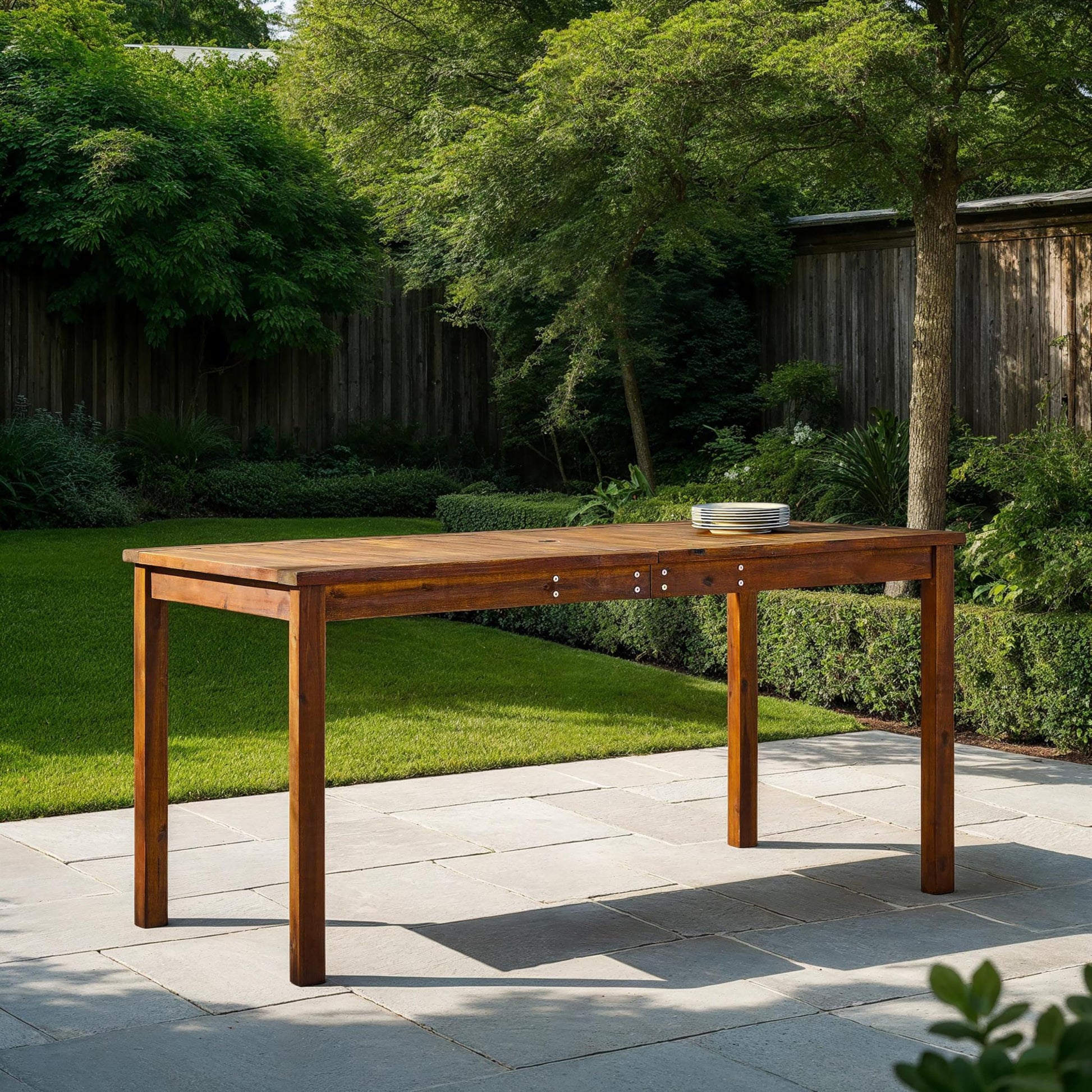 Dominica Contemporary Slatted Outdoor Dining Table, 34 Inch, Dark Brown