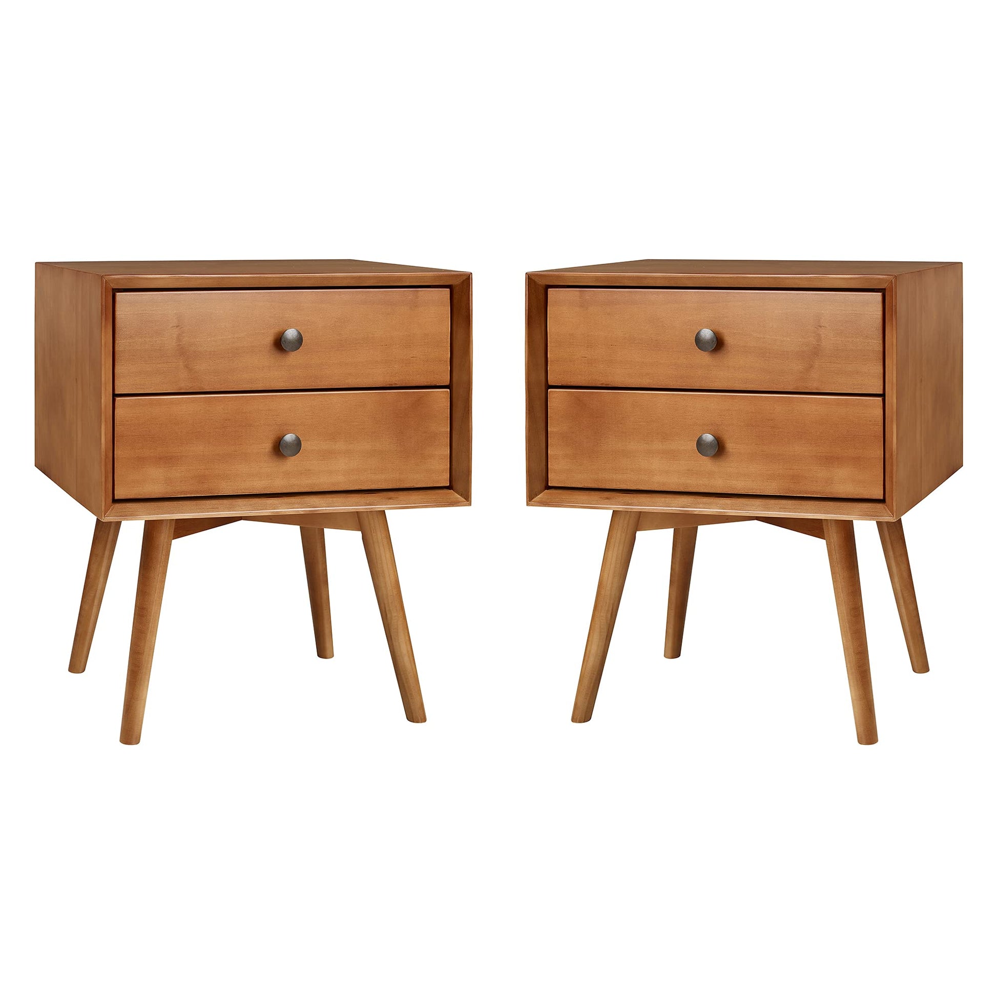 Walker Edison Ella Mid-Century Modern 2-Piece 2-Drawer Solid Wood Nightstand Set, 2 Pack, Caramel