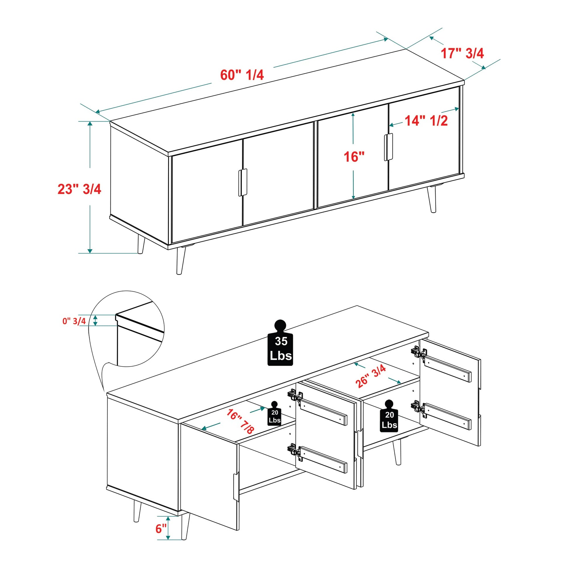 Genia Mid-Century Modern Solid Wood Stand for TVs up to 65 Inches, Walnut