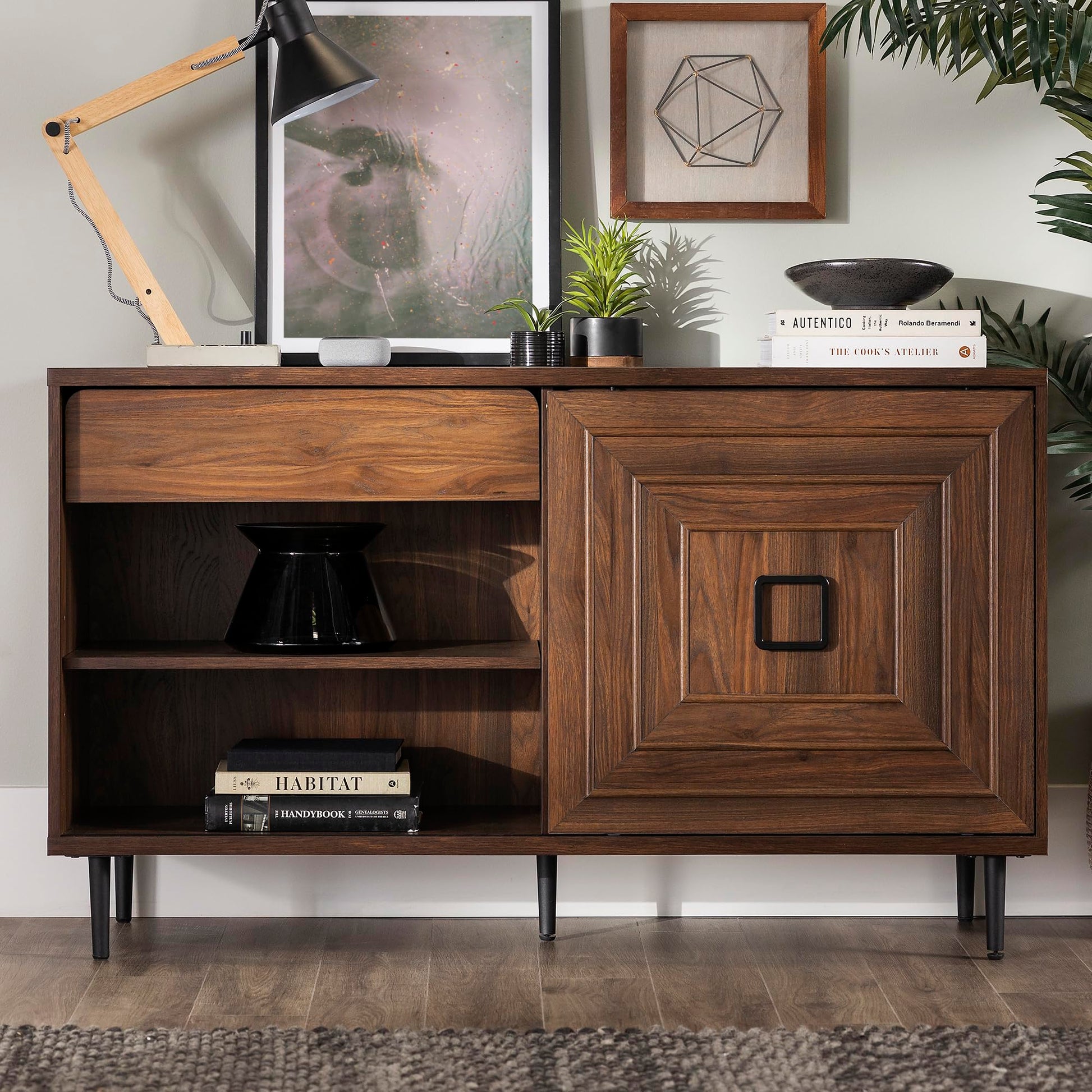 Mid-Century Modern Wood Kitchen Buffet Sideboard-Entryway Serving Storage Cabinet Doors