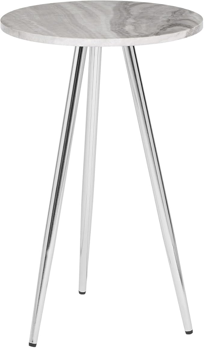 Modern Glam 3-Leg Side Table, 25 Inch, Faux Grey Marble/Gold