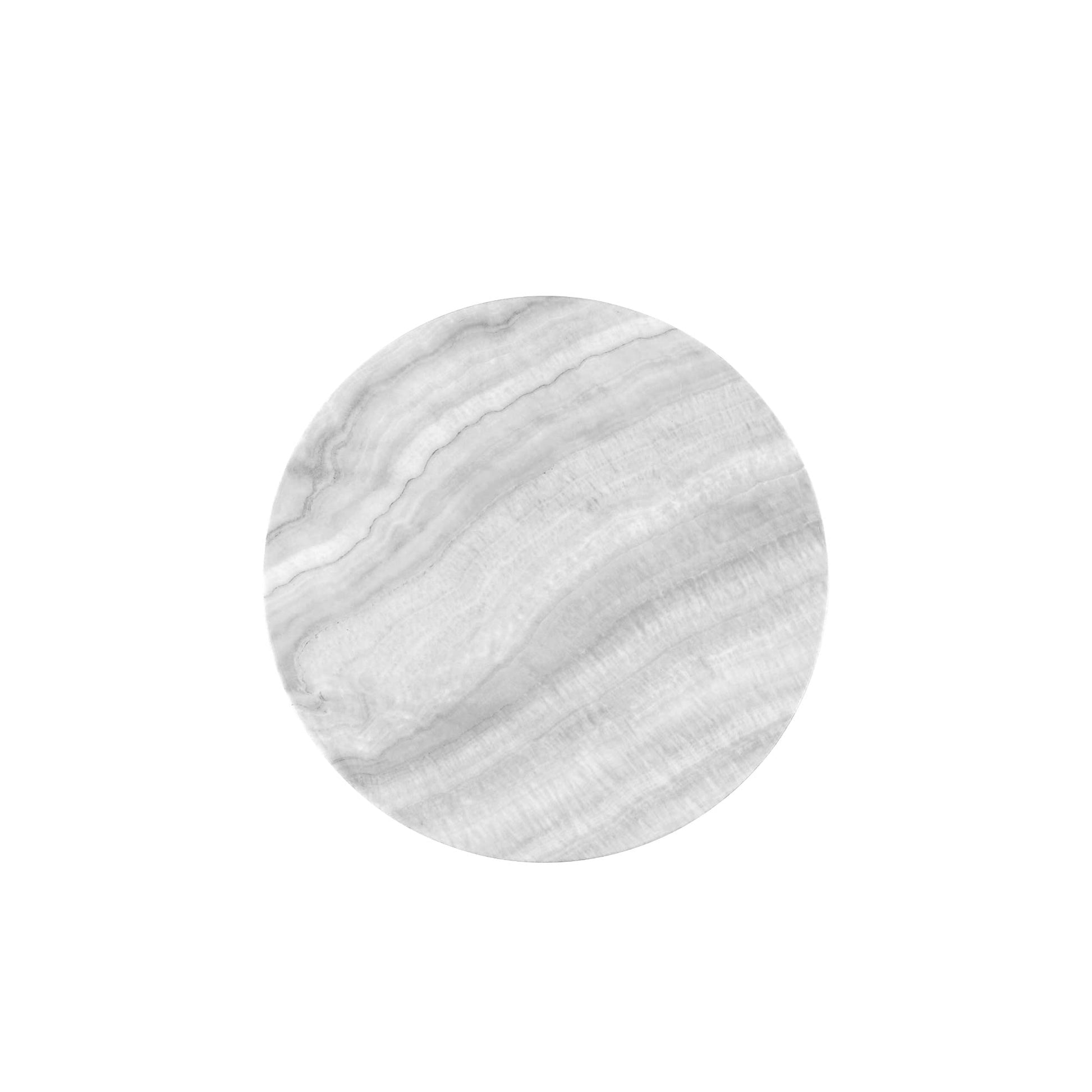 - UV-coated faux marble top & painted gold metal base for a modern aesthetic