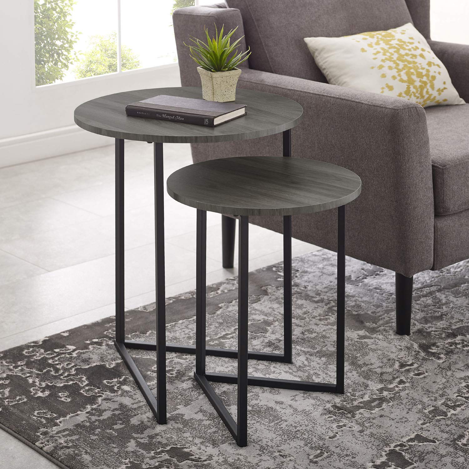 Modern Round Metal Base Nesting Set Side Accent Table Living Room Storage Small End Table