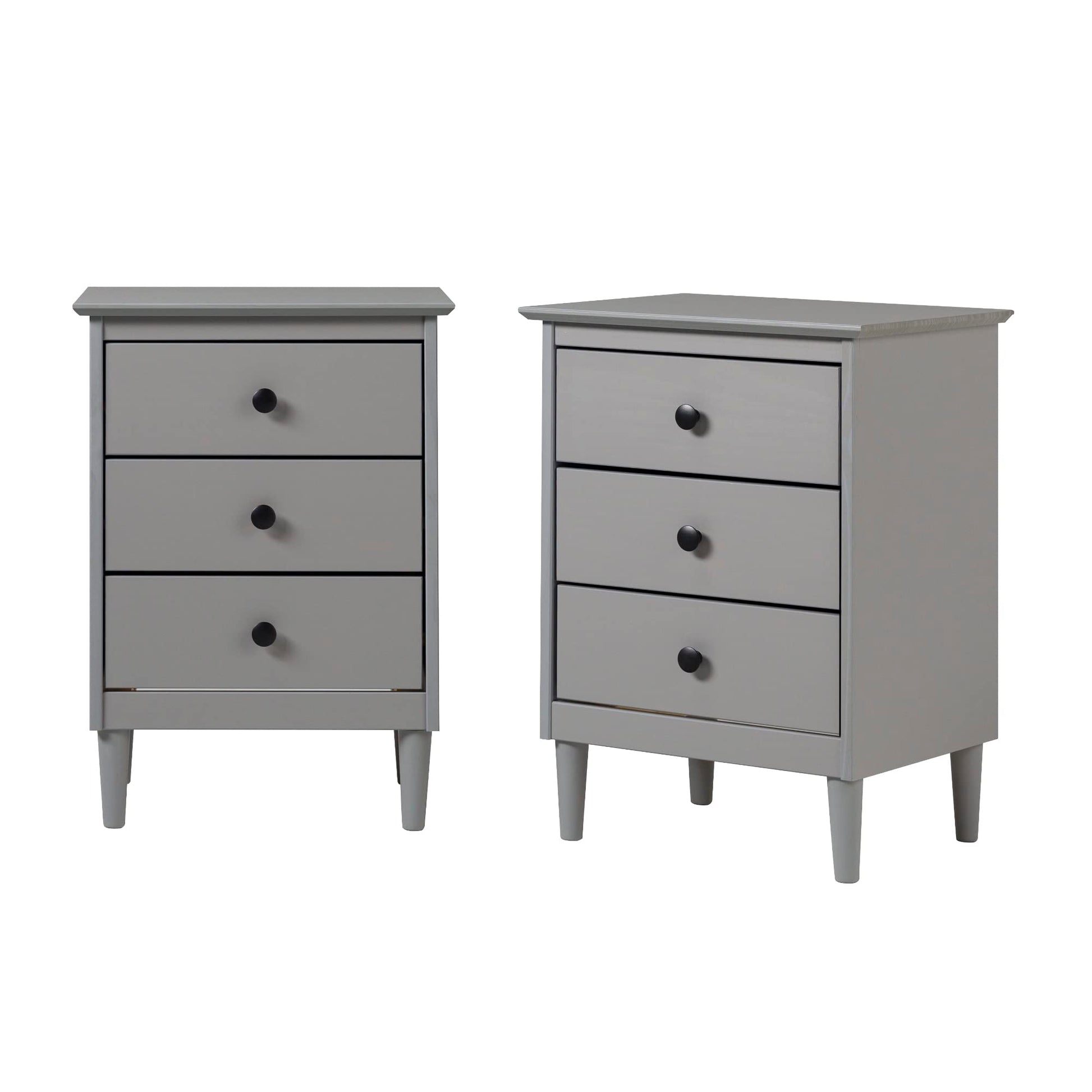 Myron Modern 3-Drawer Nightstands, Set of 2, Grey