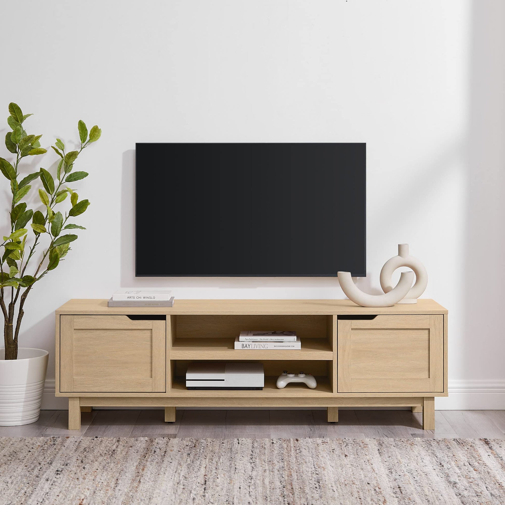 Tage Modern Pull-Open Door Low Stand for TVs up to 65 Inches, 58 Inch, Coastal Oak