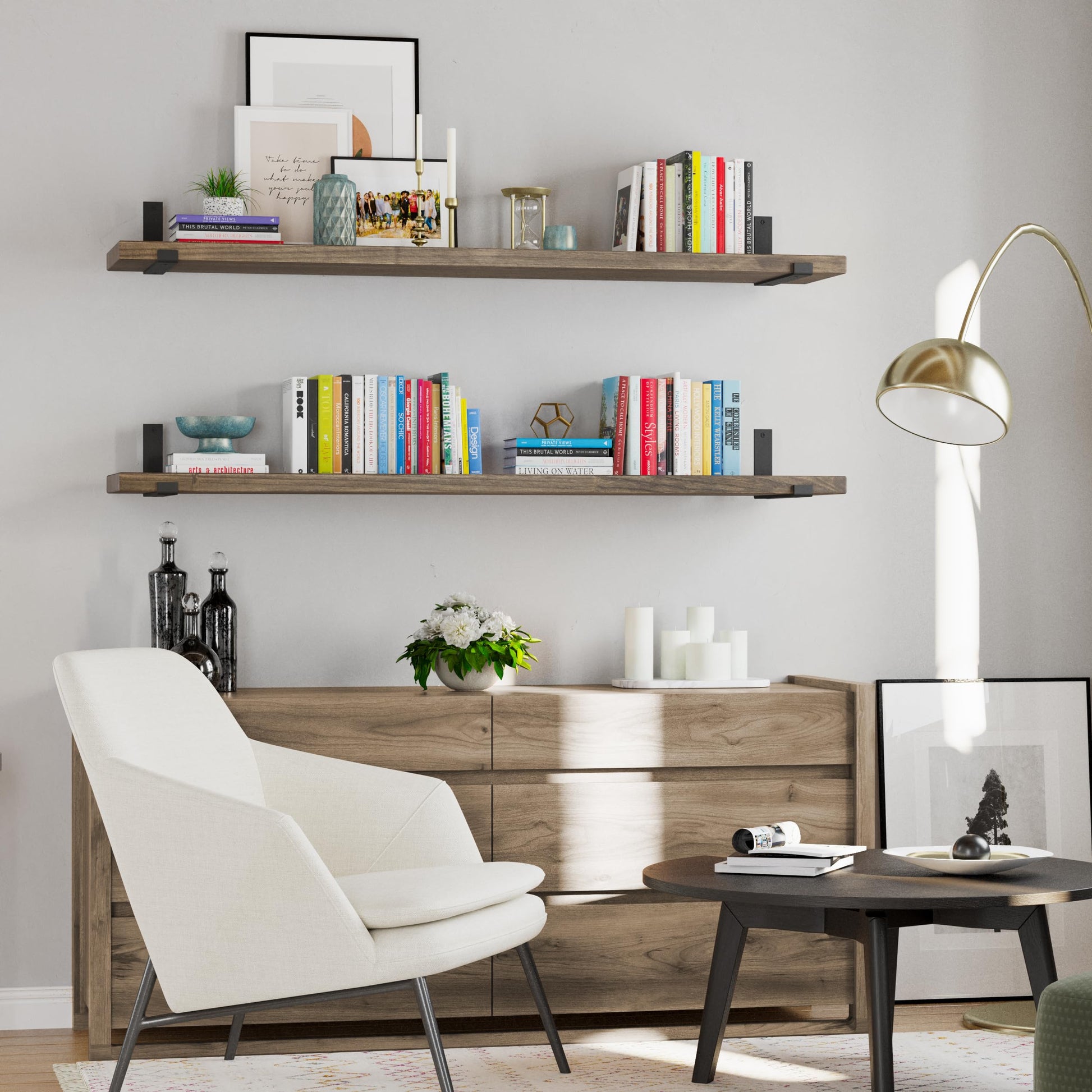 - If the brackets are mounted directly to the studs, each shelf can hold up to 110 lbs If the brackets are mounted on any hallow space on the wall with included anchors each shelf can hold up to 80 lbs.