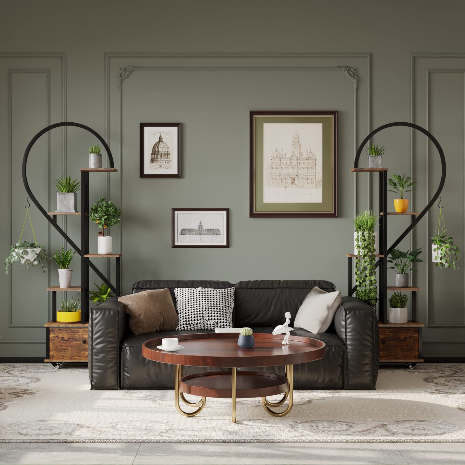 5-Tiered Tall Plant Stand Indoor, Heart-shaped Metal Plant Stand with Wheels