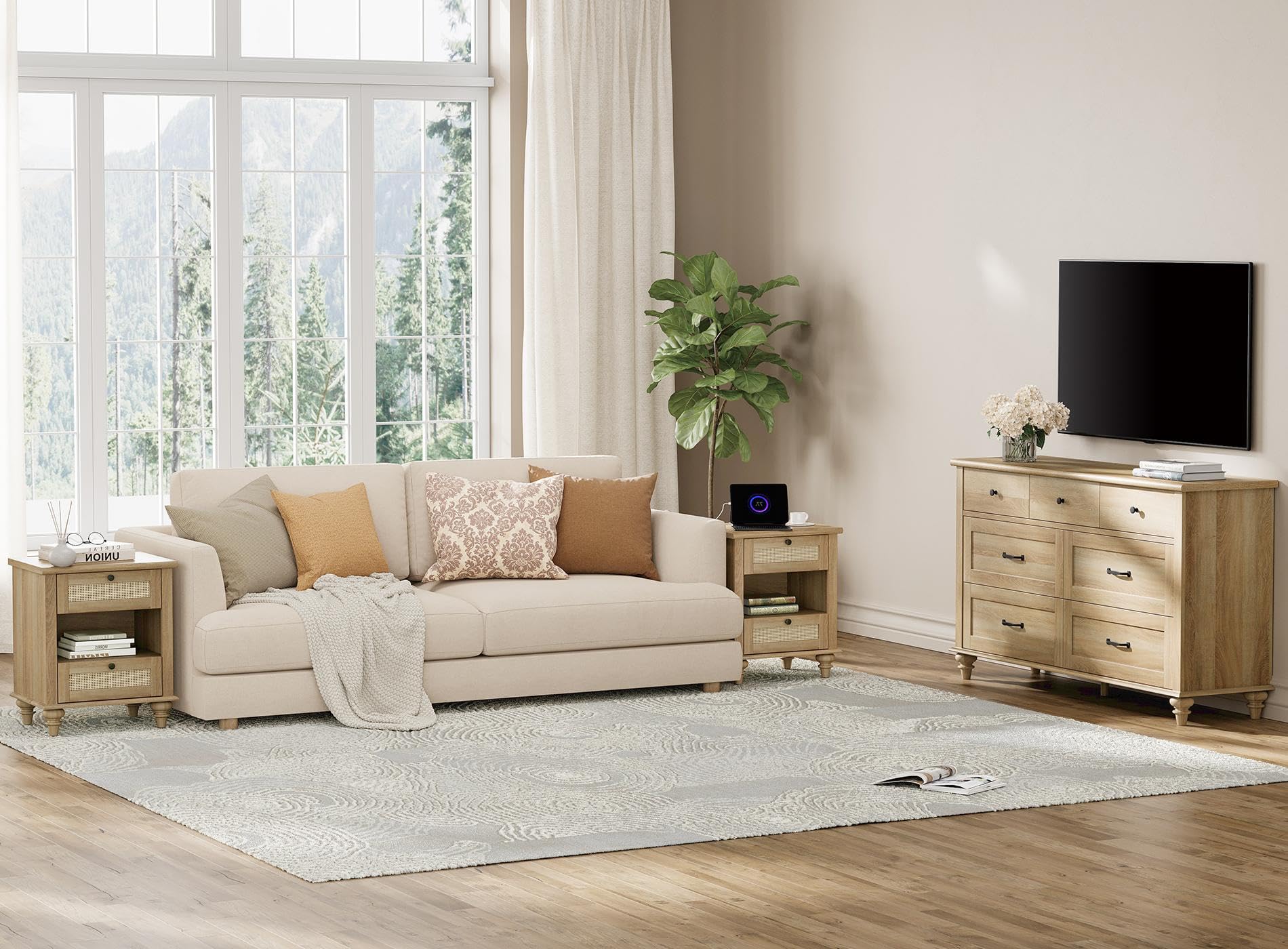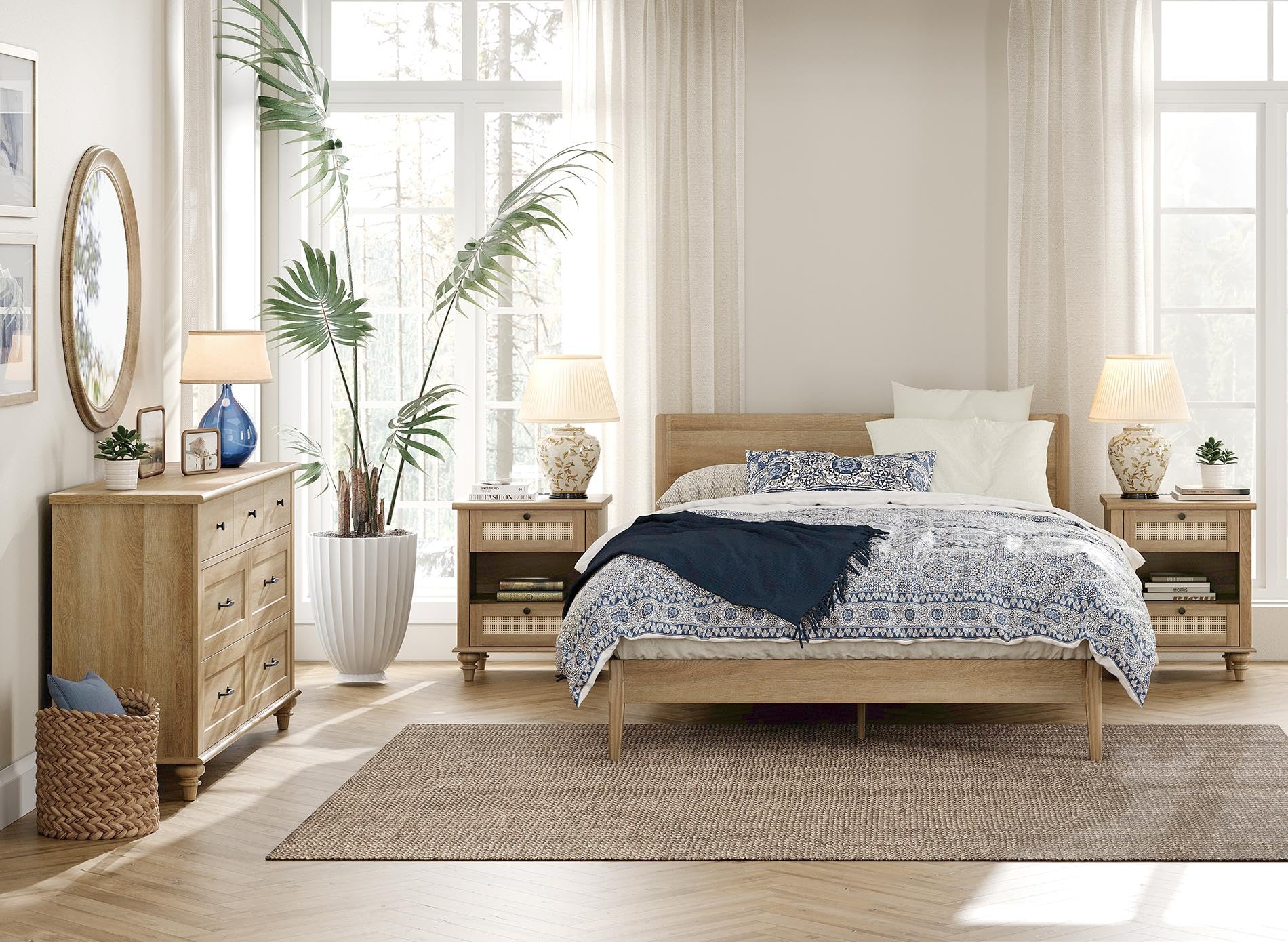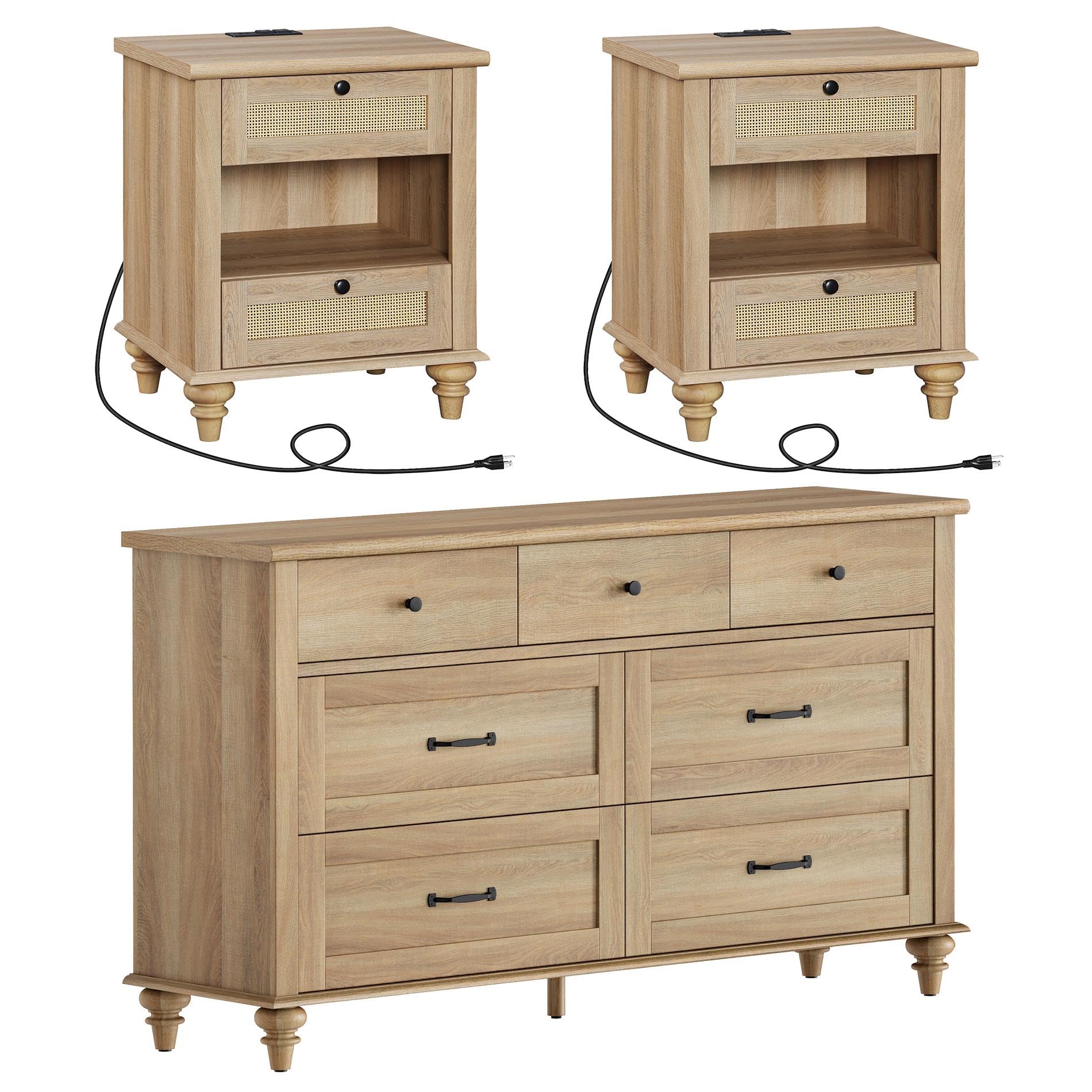 3 Piece Bedroom Set - Includes Bedroom 7 Drawer Dresser, Set of 2 Rattan Bedside