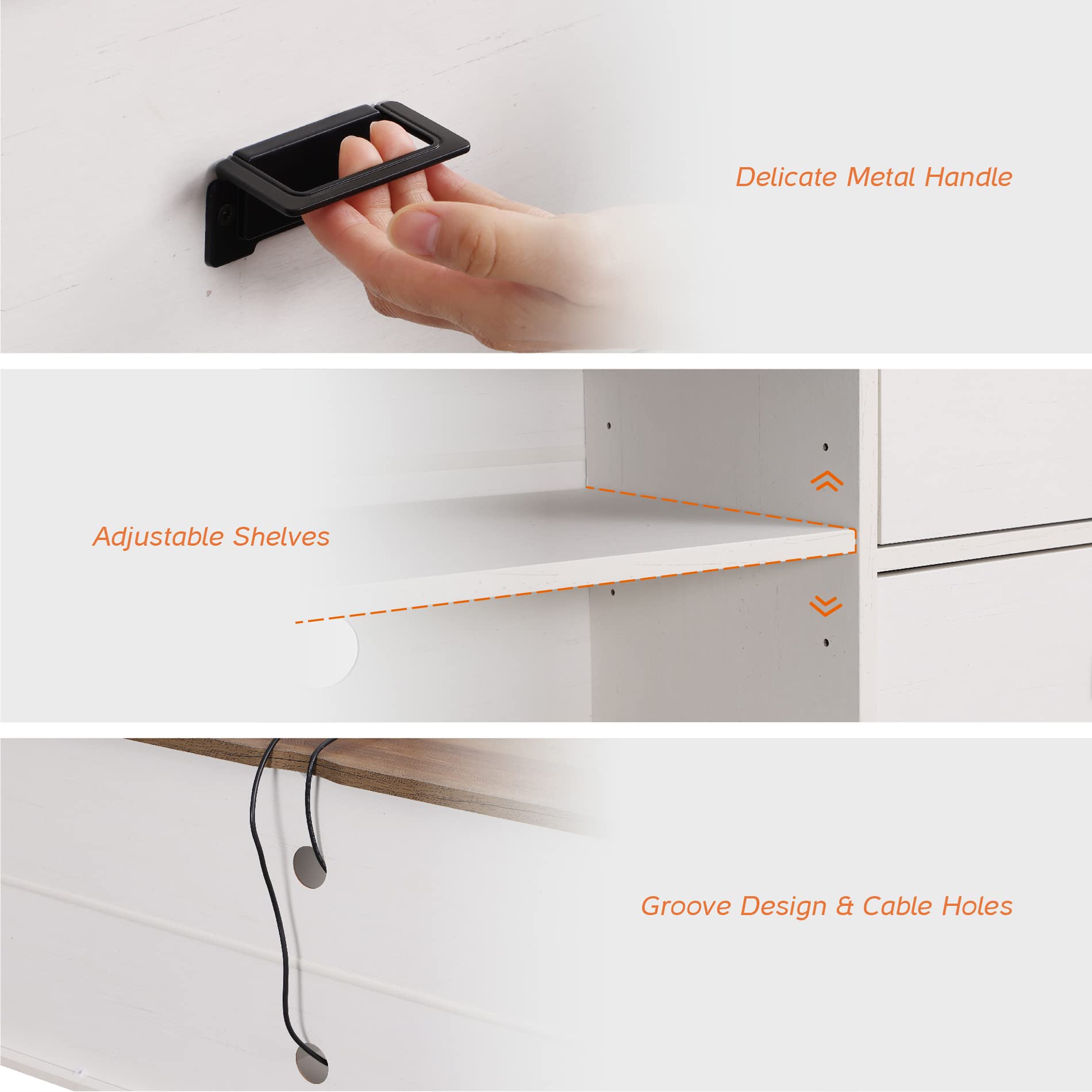 - Multiple cable management round cut-outs in the back panel and groove design on the tabletop allow for easy organization for your audio receiver, and DVD player and easily hide all of the wires. It helps keep your living room tidy.