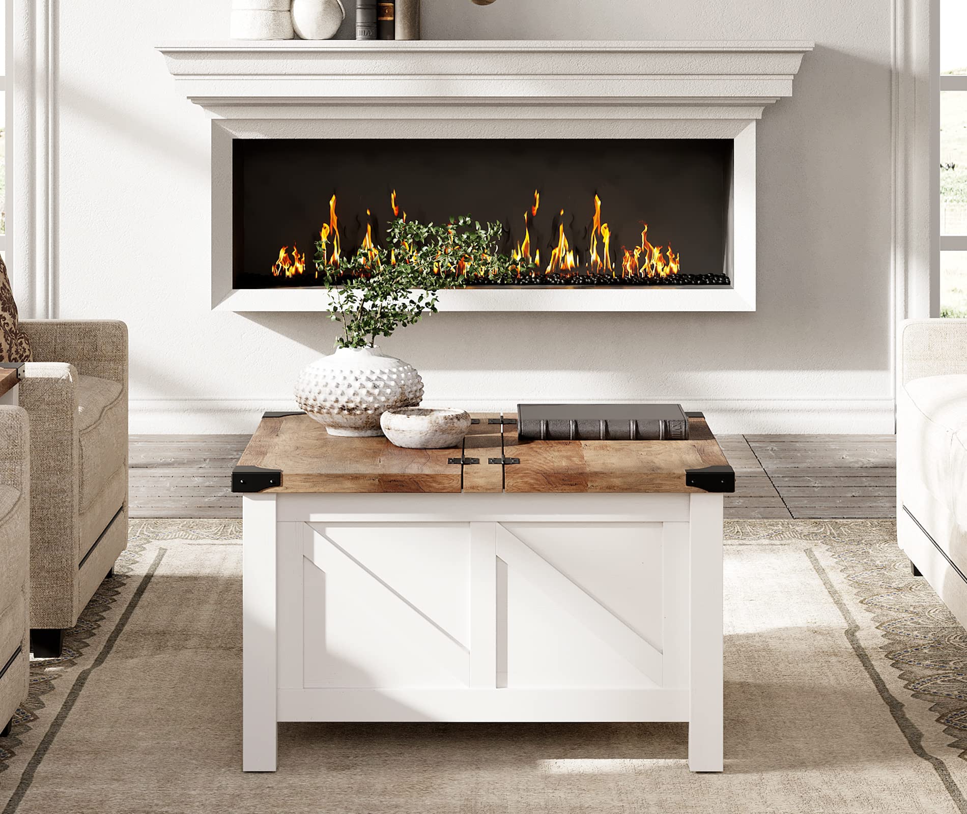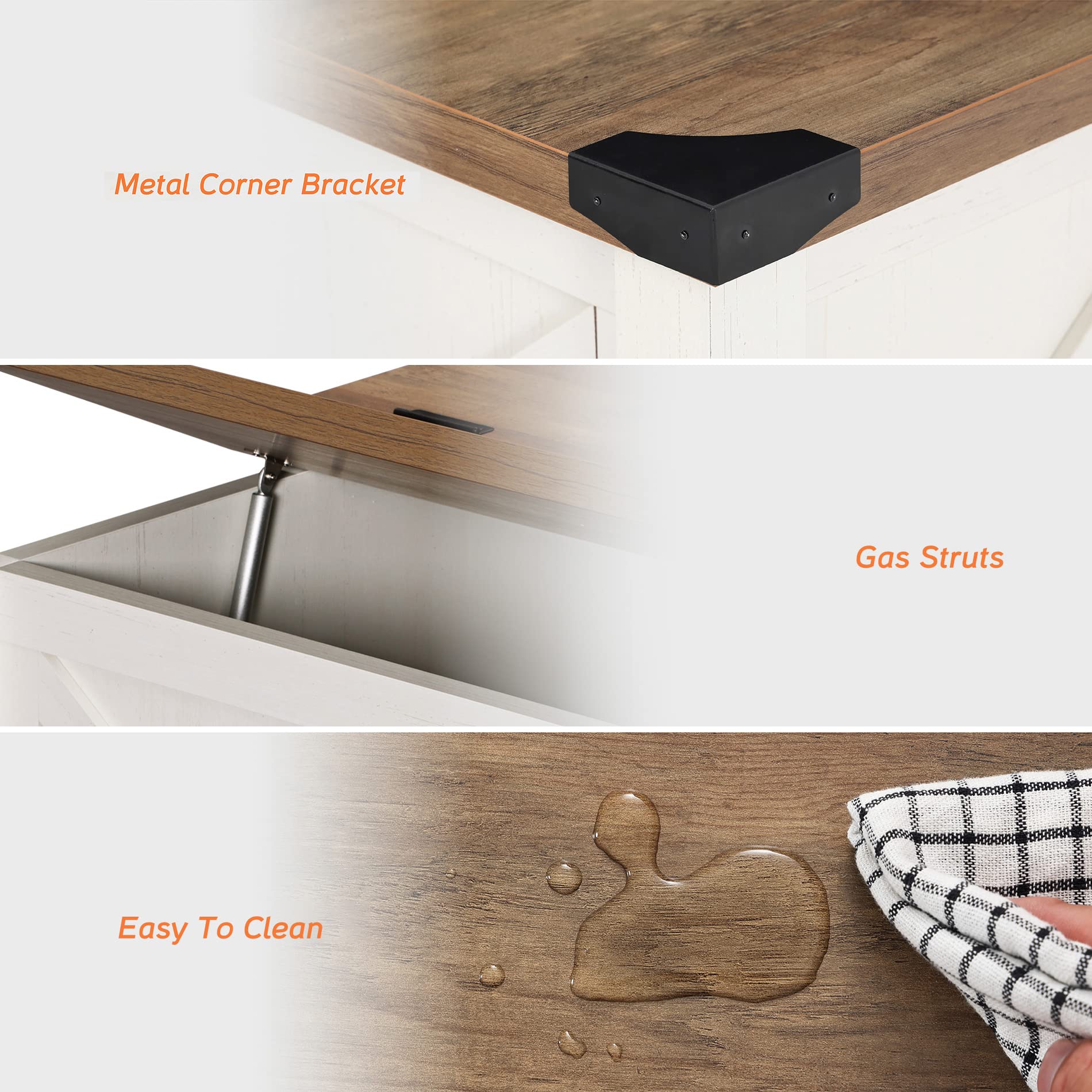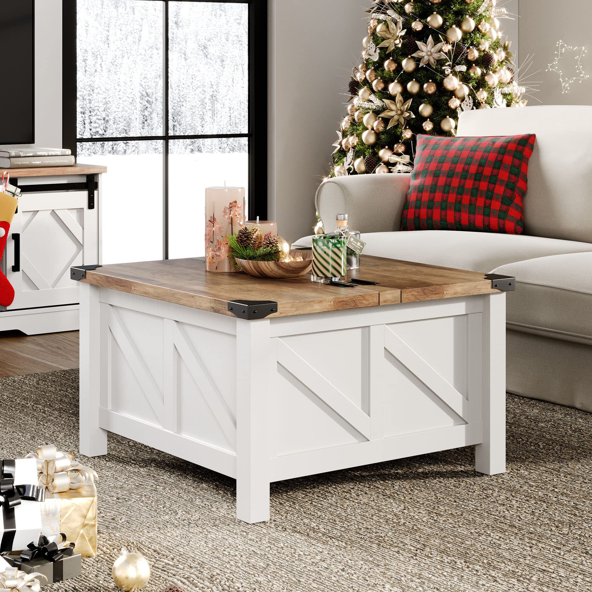 Square Wood Center Table with Gas Struts Lift-Top for Extra Large Hidden Storage