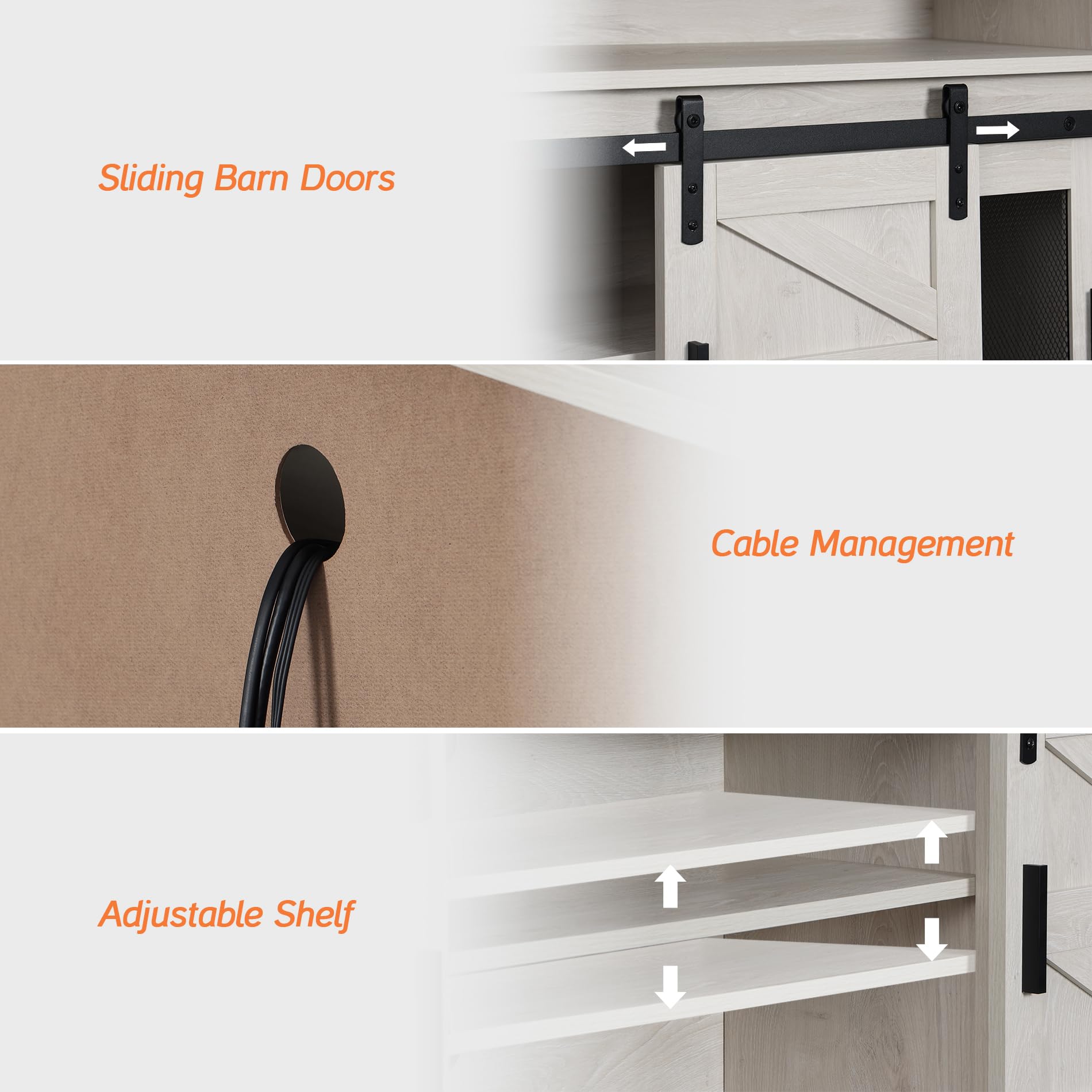 - Muti-functional Entertainment Table: Both as a TV stand in your living room or bedroom and a buffet table in your dining room, with flexible and concealed storage space to keep your room organized and free of clutter. Whether you are a fan of a modern style or a lover of a vintage feel, this console table will be a perfect match to your room decor and show your personal style and will catch your eyes for the fashionable barn door design, classic farmhouse style, sturdy structure.