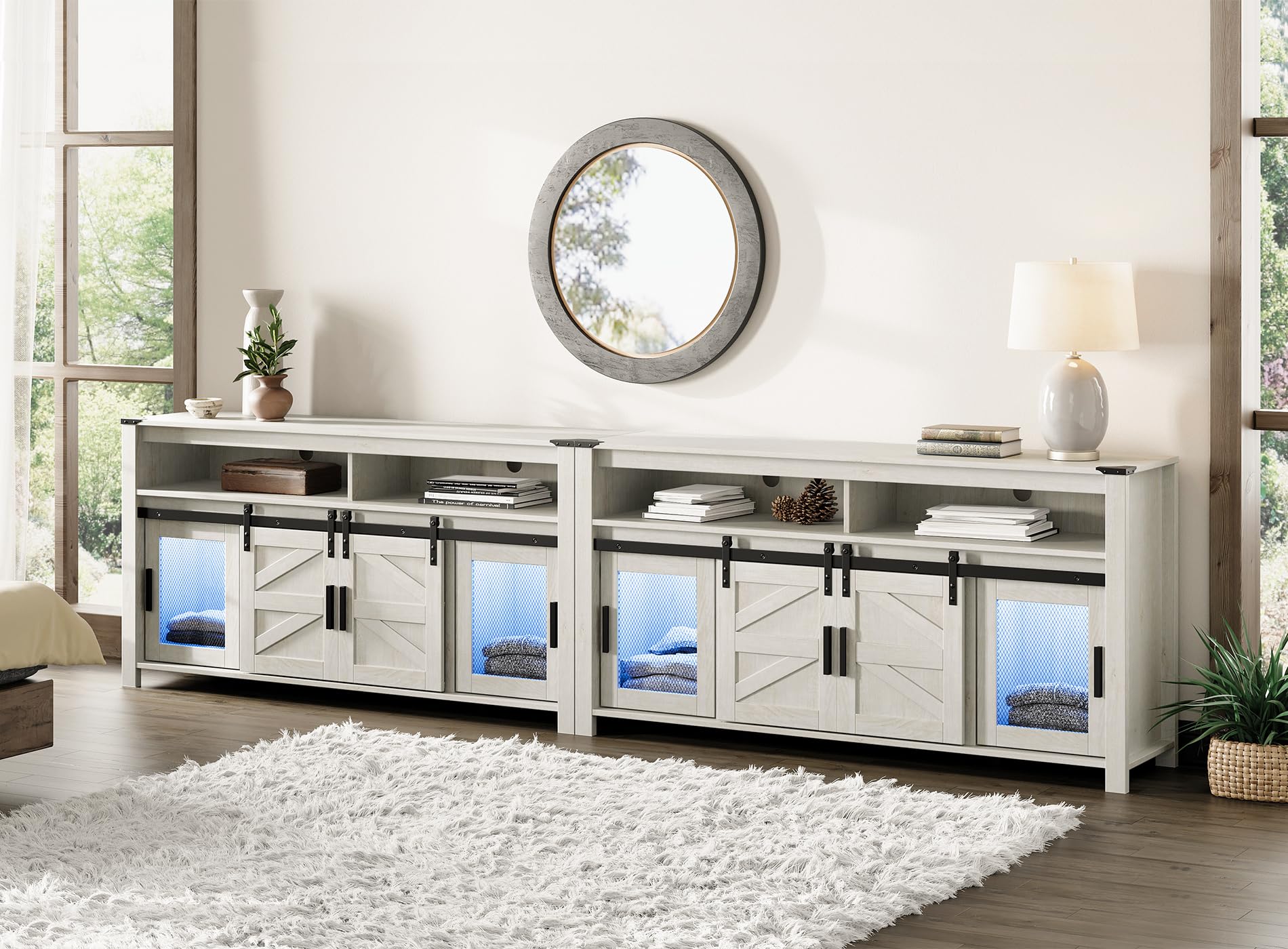 TV Stands for 100+ Inch TVs, 118" LED Farmhouse Entertainment Center