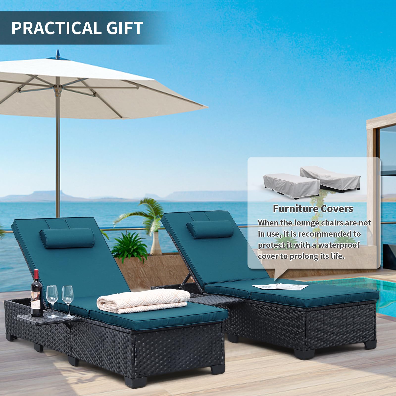 - WIDELY USED: The set includes 2 pieces chaise lounge chairs, 2 cushions, and 2 furniture covers. Modern and simple design suitable for any decoration style, whether indoor or outdoor, such as patio, porch, balcony, backyard, deck, poolside, beach, garden, lawn, etc.