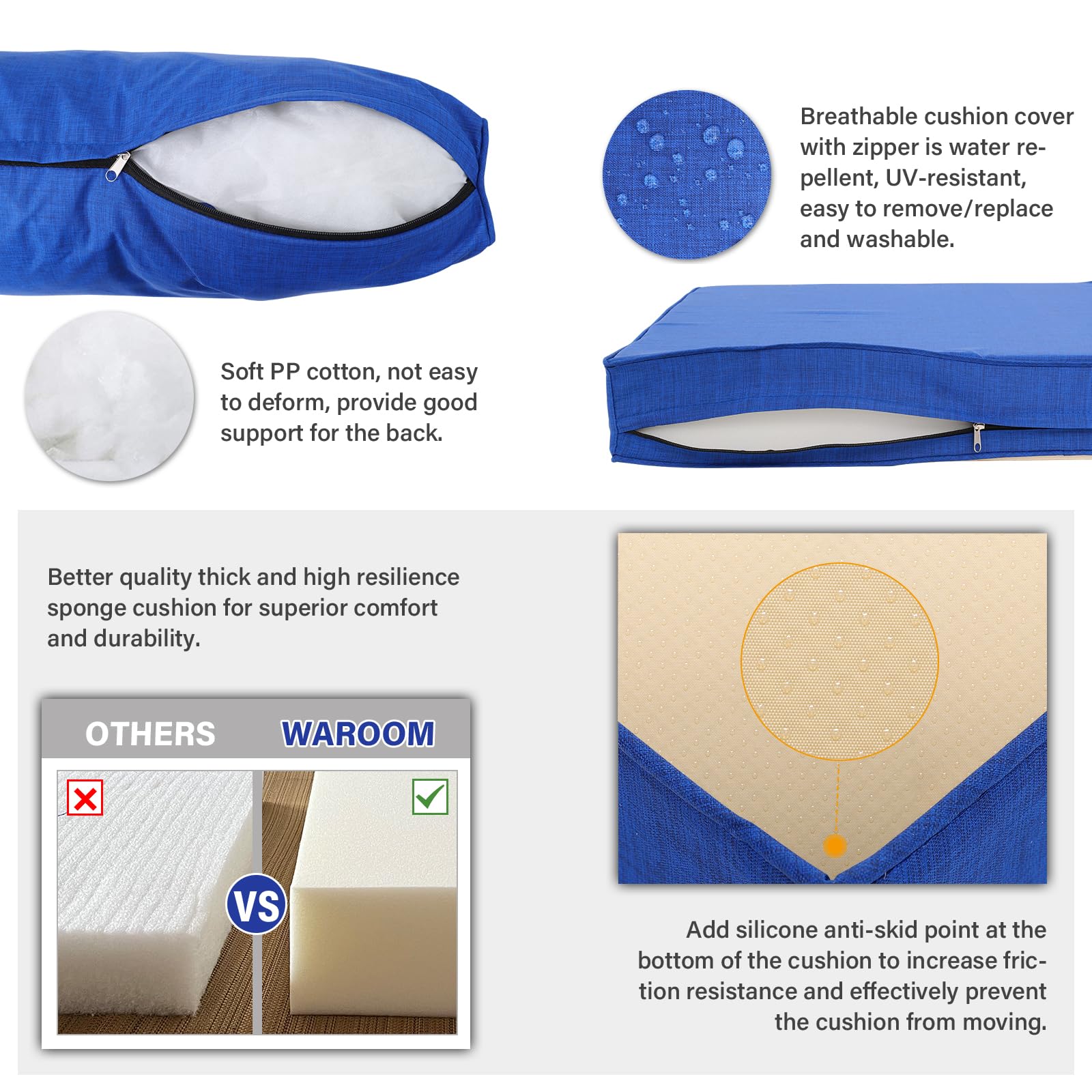 - COMFORTABLE: The anti-slip seat cushions are filled with a 4" thick high resilience sponge for superb comfort and relaxation, breathable cushion cover with zipper is wear-resistant, water repellent, UV-resistant, and high color fastness.
