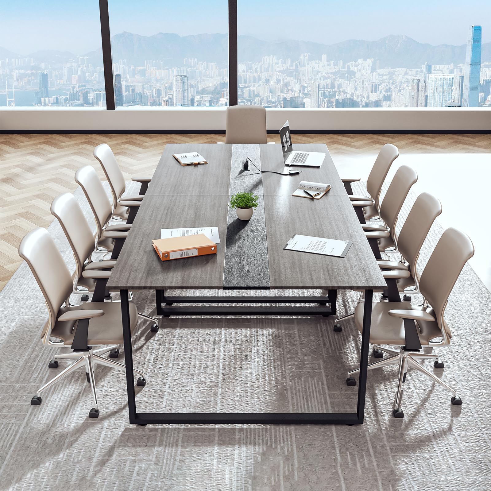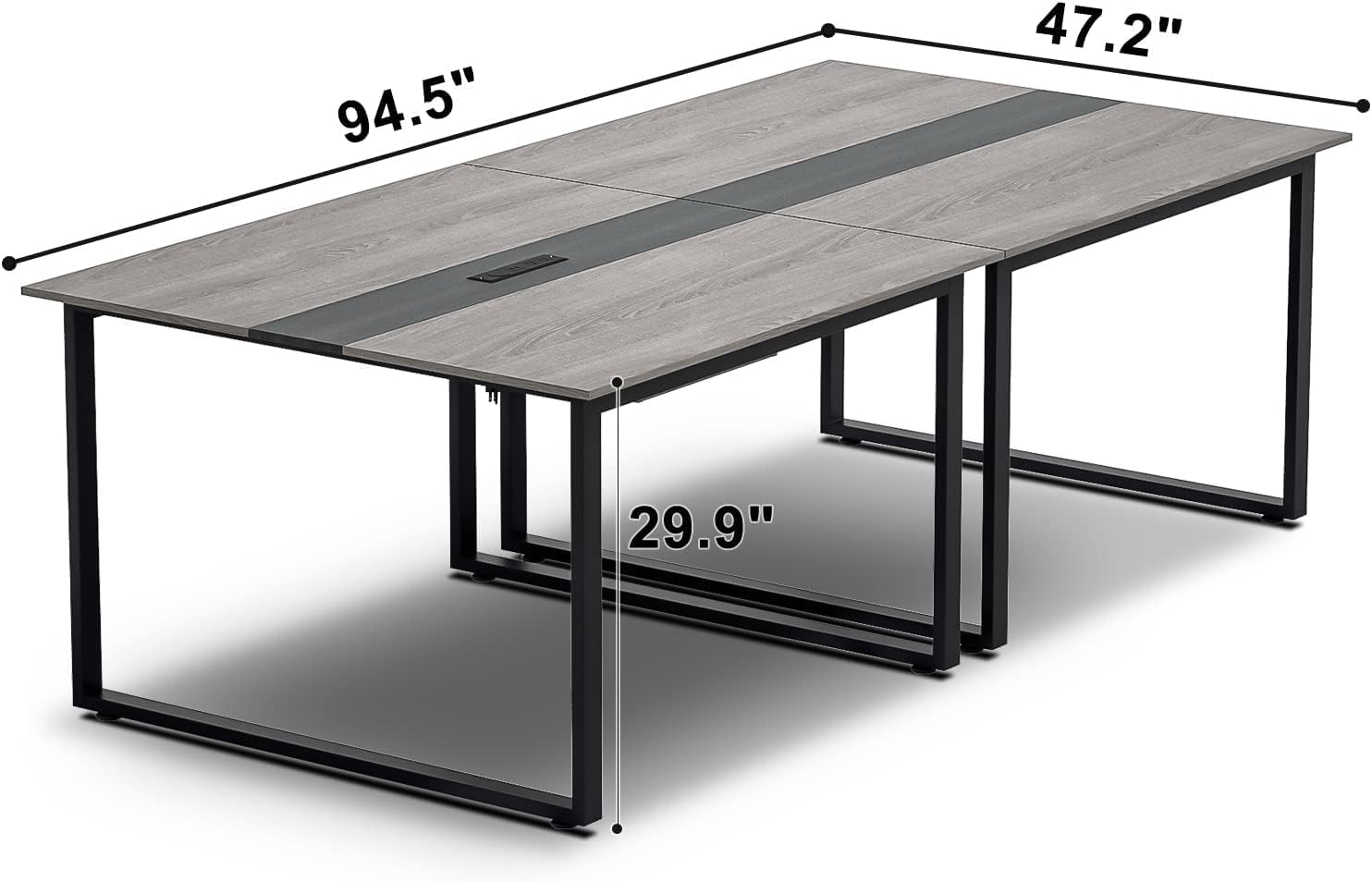 - The meeting table measures 94.5"x47.2"x29.9" and can comfortably seat up to 6-8 people. Its spacious tabletop provides ample space for files, laptops, or remotes. It comes equipped with 2 USB ports、2 outlets and QI Wireless charging built-in, so you don't need to purchase extra power strips for charging.