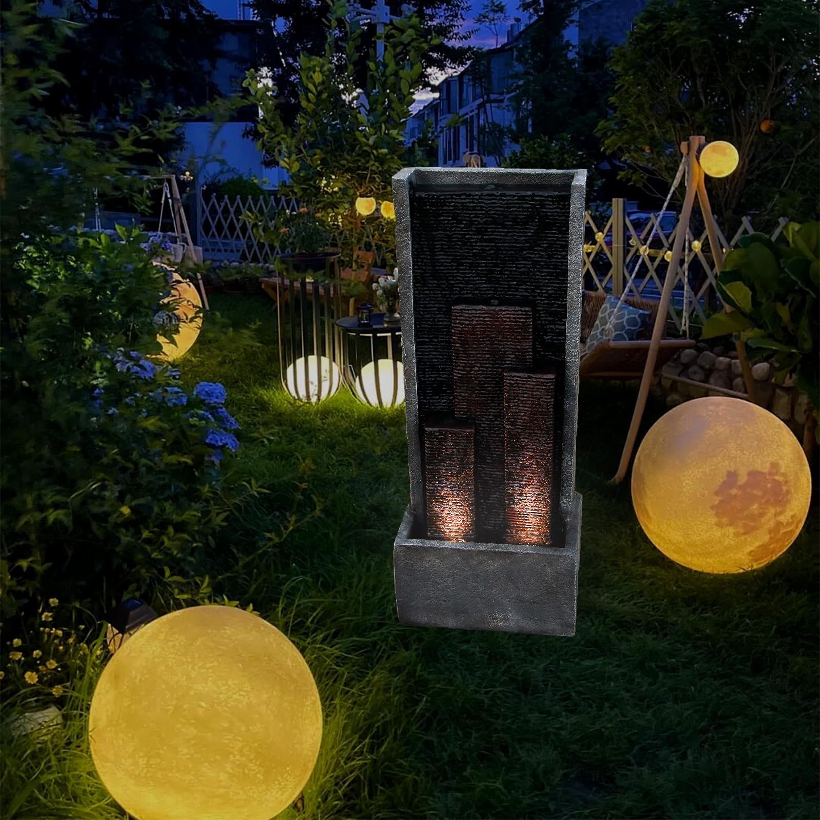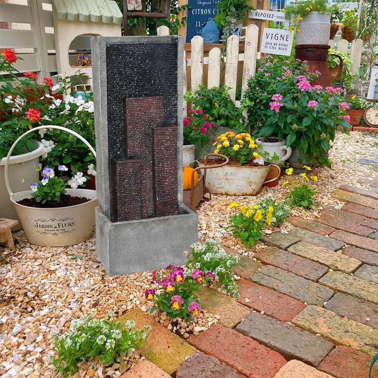 - UNIQUE DESIGN:Water fountain consists of 4 stacked rectangles in a unique multi-layered rock design and premium dark grey colour, creating a contemporary style for an area near you and allowing the garden fountains outdoor to perfectly accent your space.