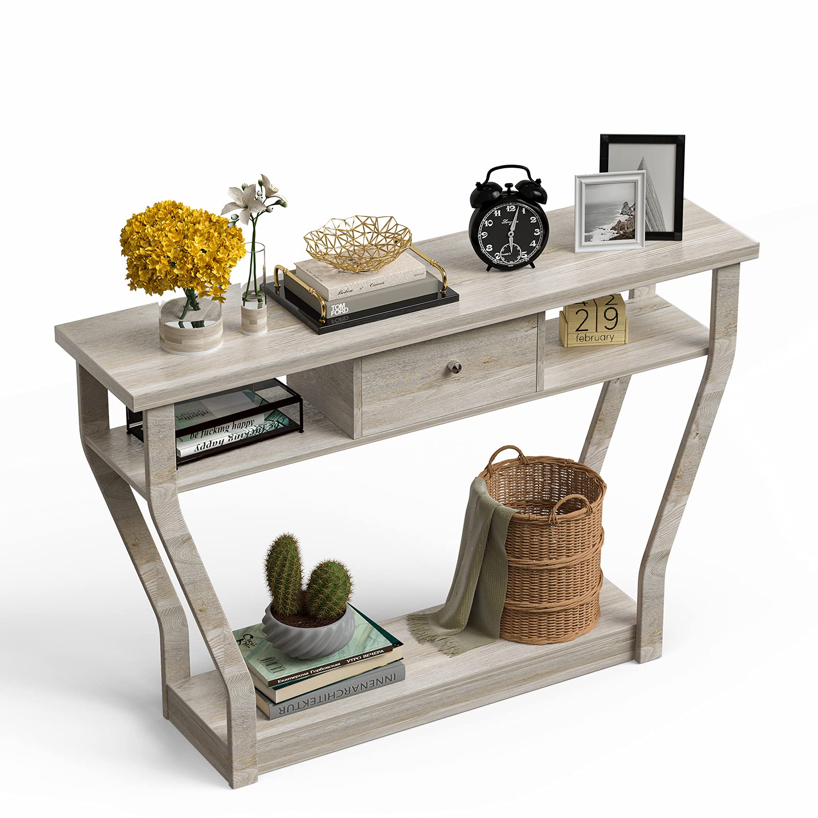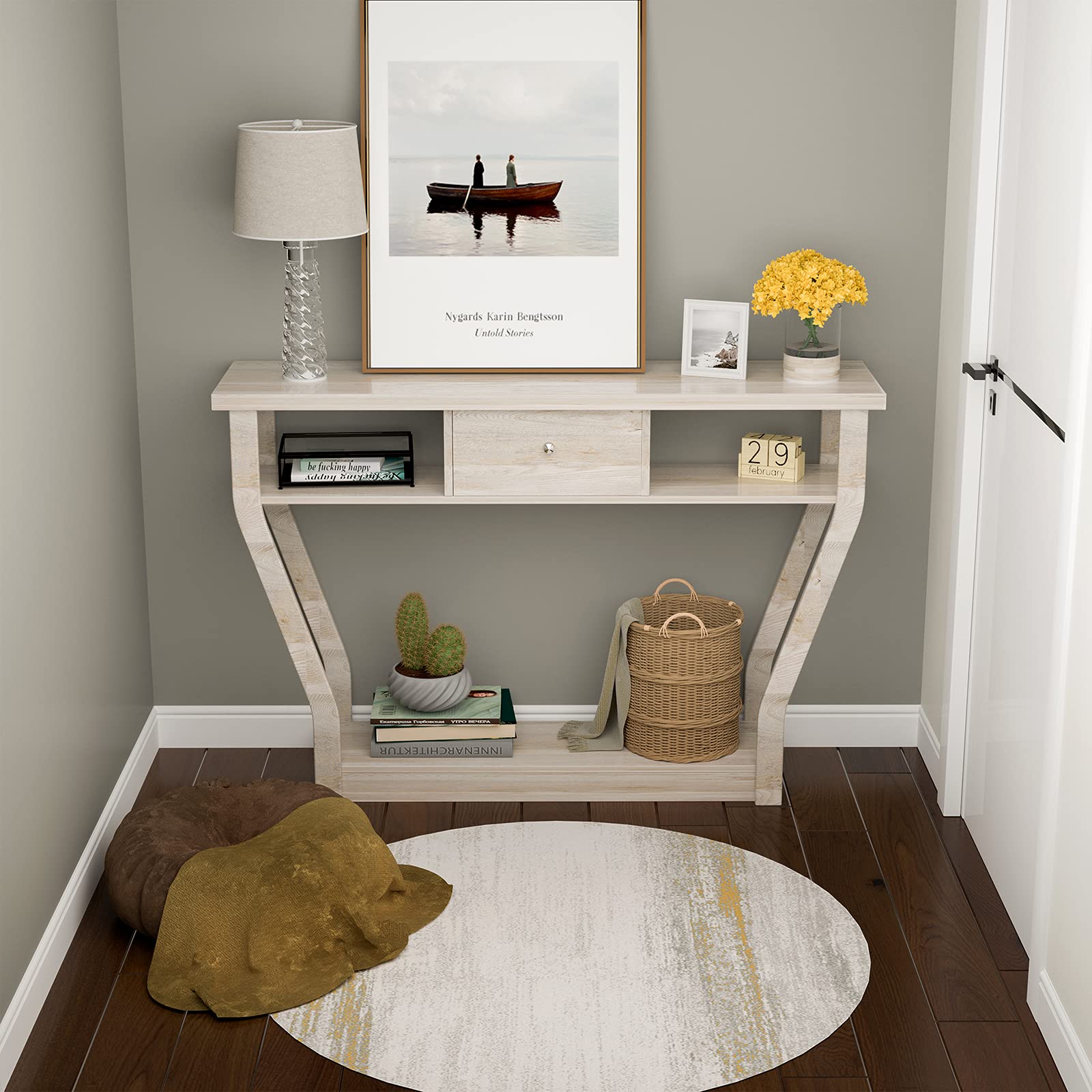 - Modern Design StyleThis Modern Entryway Table with Three tiered shelf space, open concept design in an elegant wood-look finish, suit for kinds of decoration styles