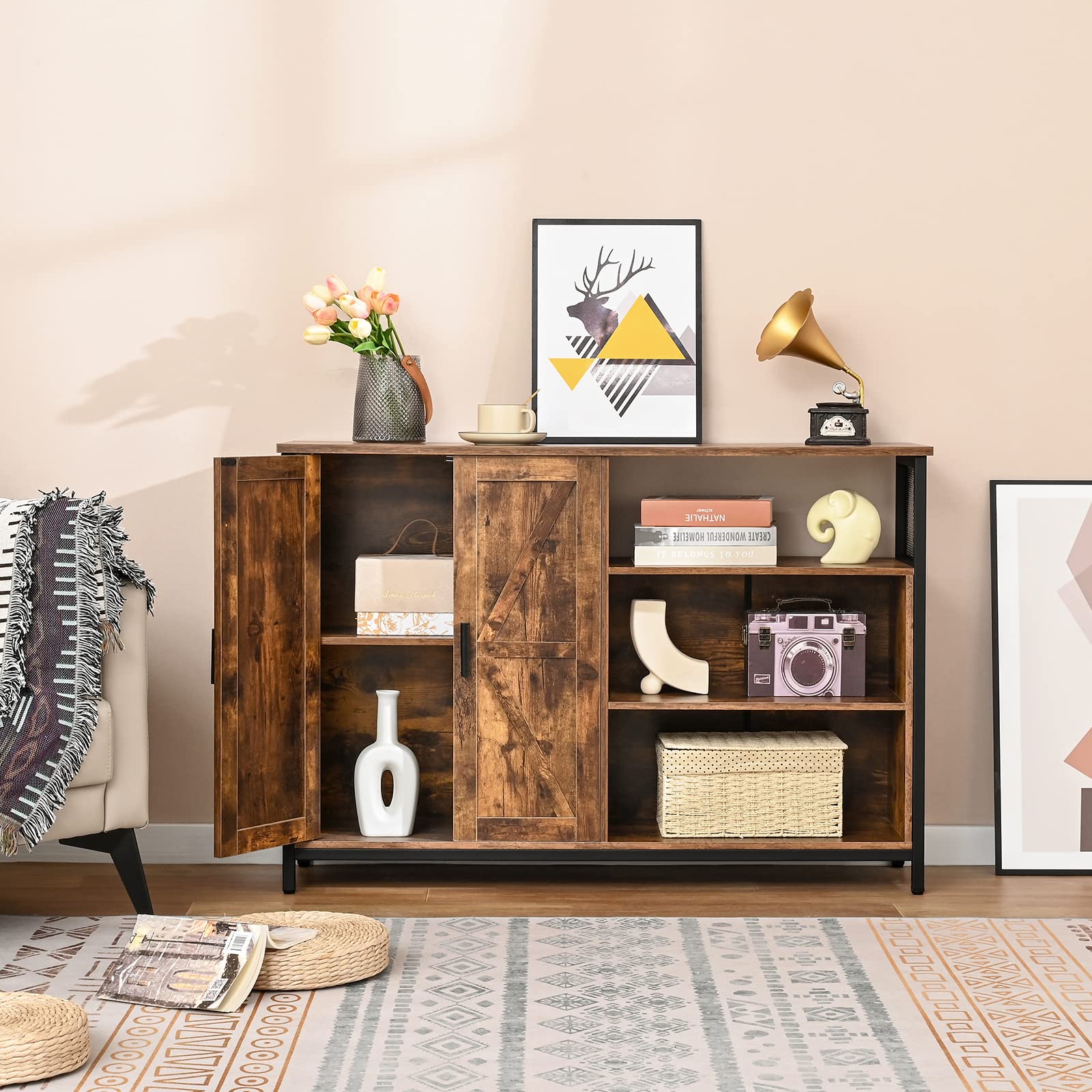 Floor Storage Cabinet, Buffet Storage Cabinet with 2 Barn Doors, Industrial Sideboard with Adjustable Shelves,