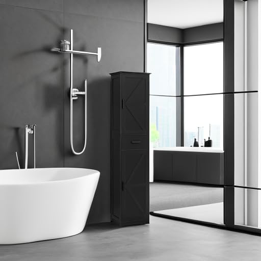 - Sturdy, Stable, and Safe: Made of high-quality P2 grade MDF, this bathroom cabinet is of good quality and features a fresh black finish for enhanced stability and waterproofing. An anti-toppling mechanism is installed behind the bathroom cabinet to shield you and your family from any potential risks