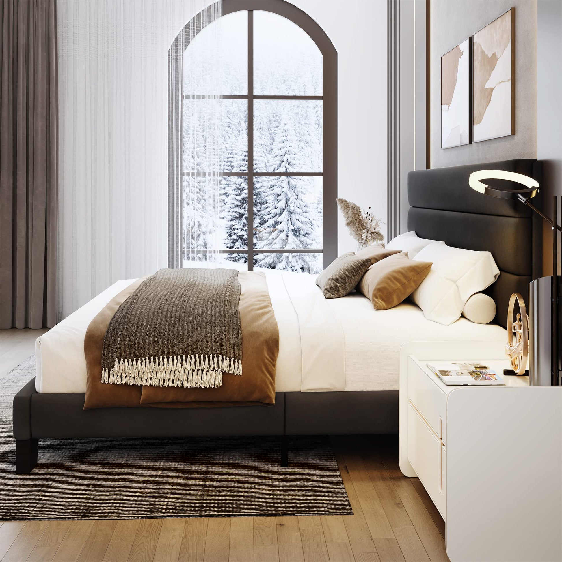 - Stylish & Comfortable: King size bed frame features a velvet upholstered headboard that adds elegance and sophistication to your bedroom. A high-quality and affordable headboard that looks great and provides excellent support and providing a comfortable backrest for reading or watching TV.