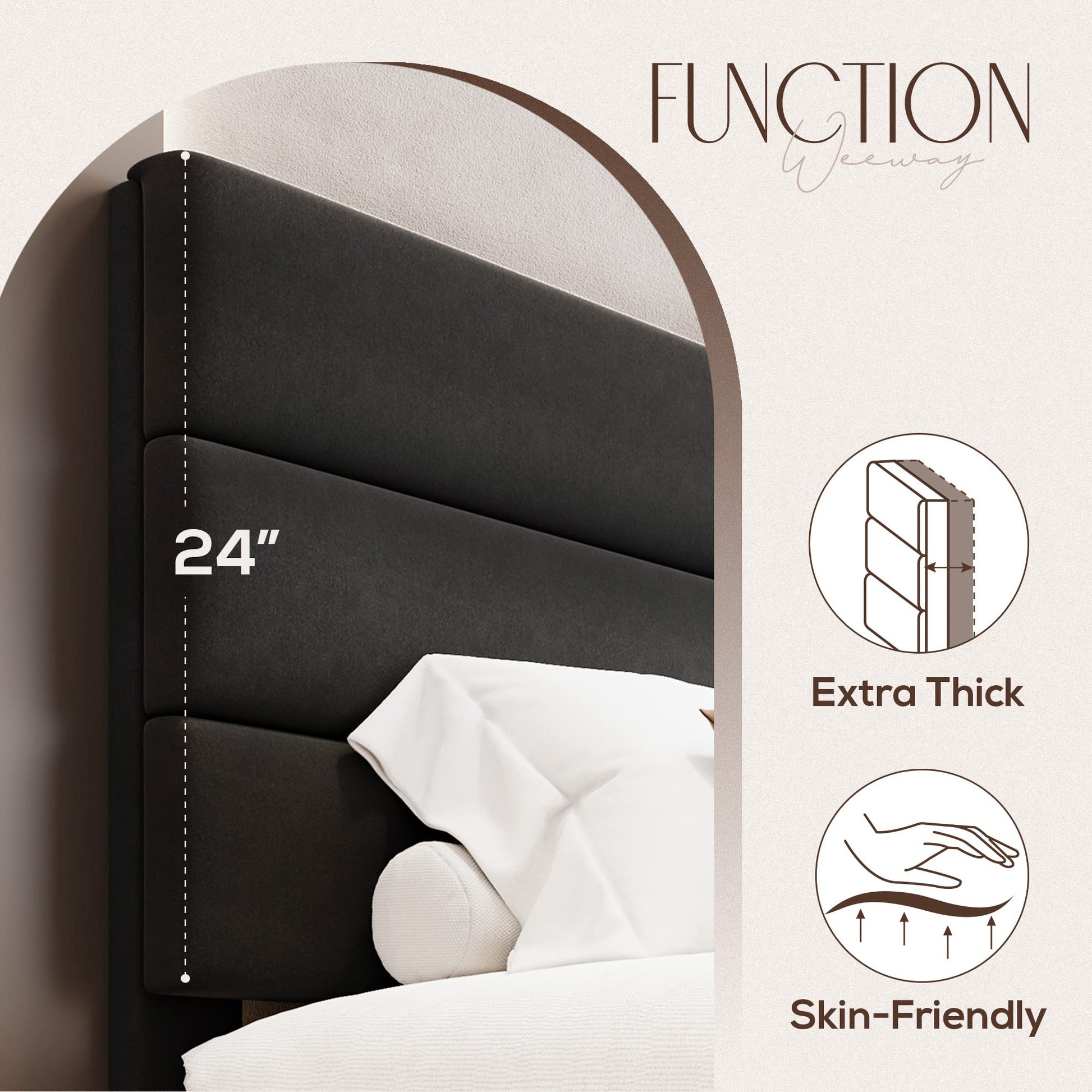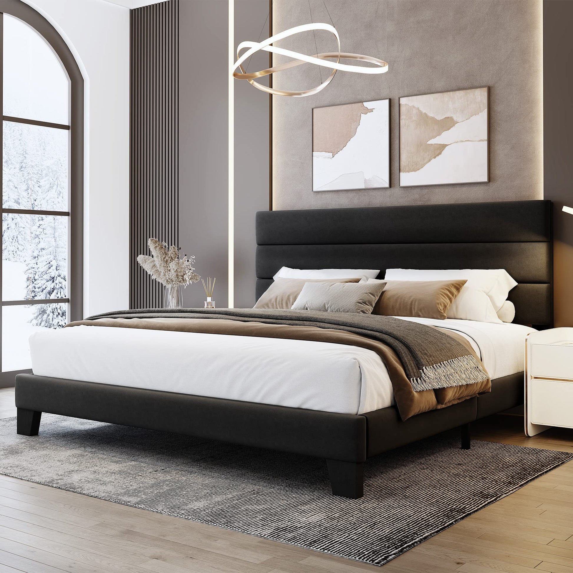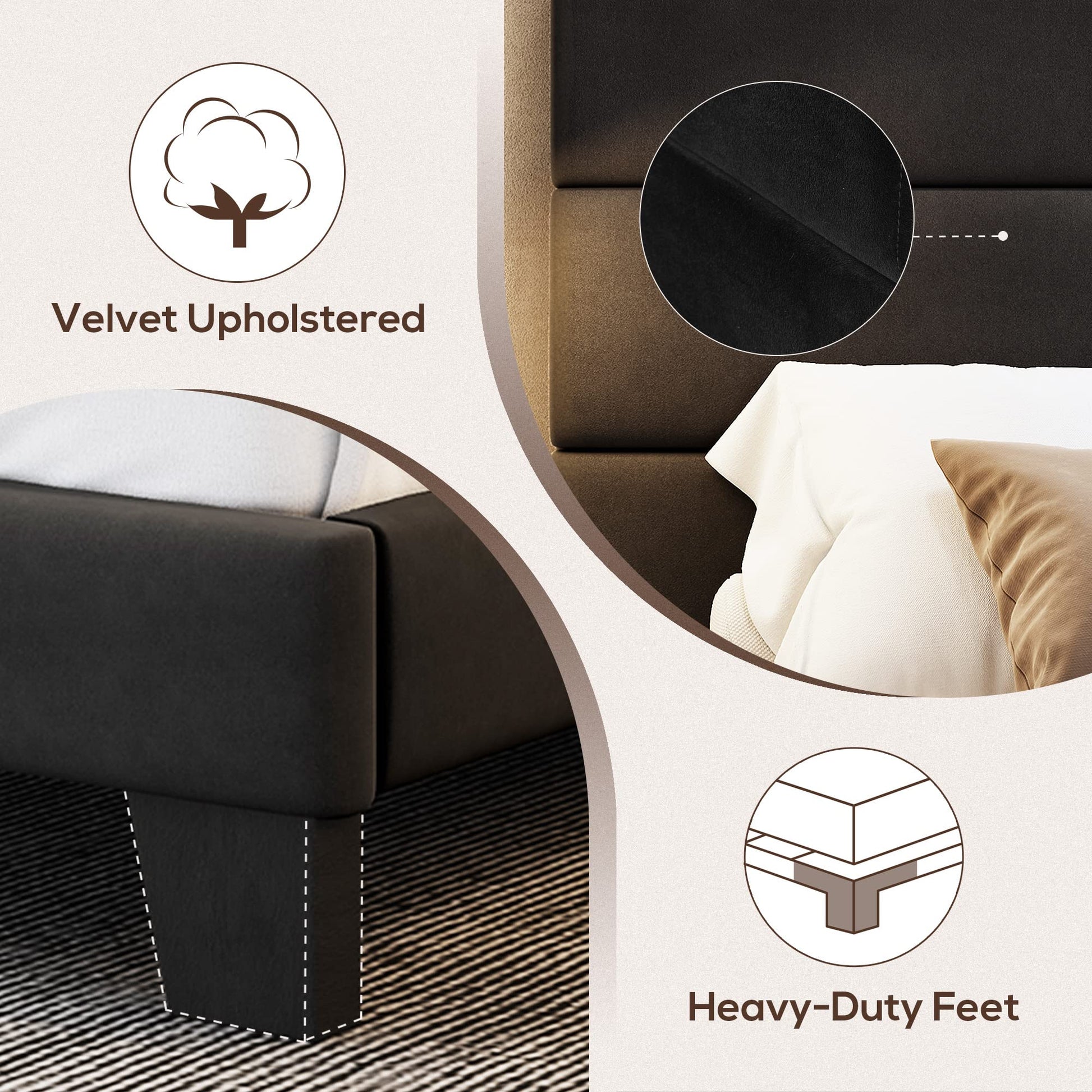 King Bed Frame Platform Bed with Velvet Upholstered Headboard