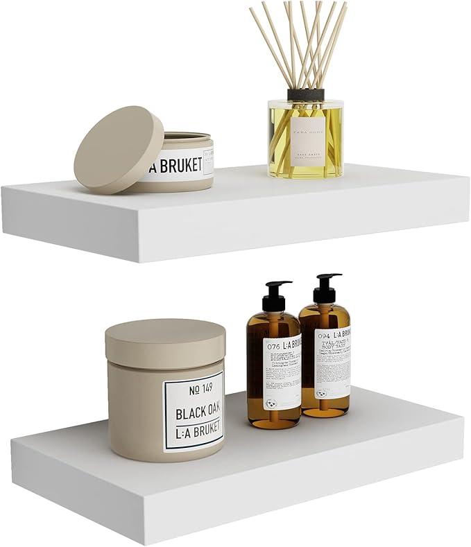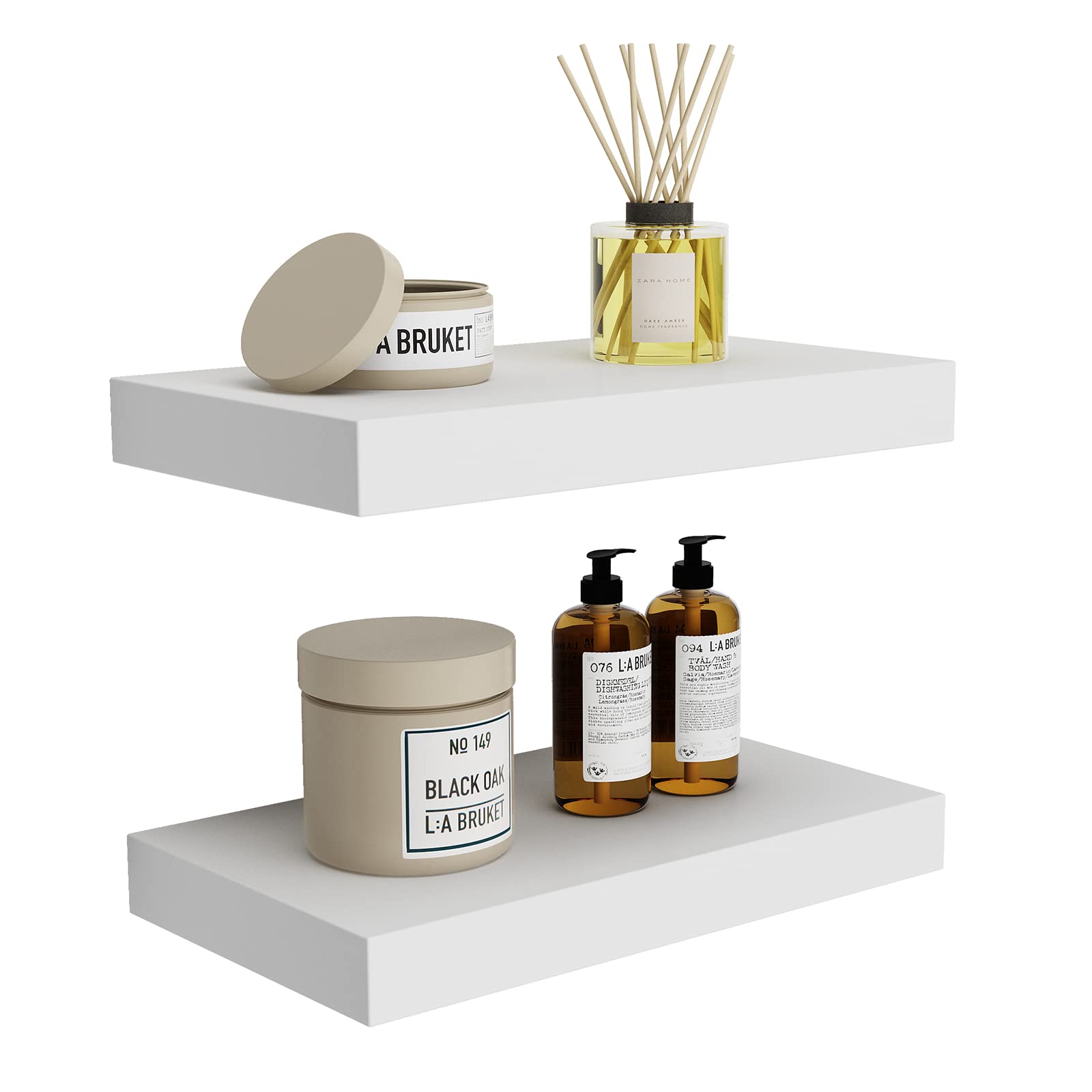 9" Deep White Floating Shelf Set of 2, Wall Shelves for Bathroom