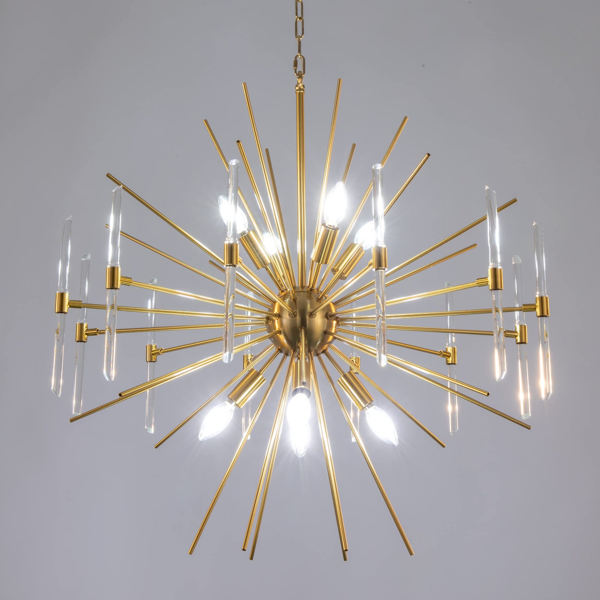 - The Sputnik Chandelier features a stunning gold finish that adds a touch of sophistication and elegance to any space. The crystal accents provide an extra layer of sparkle and shine, making it a perfect centerpiece for any room.