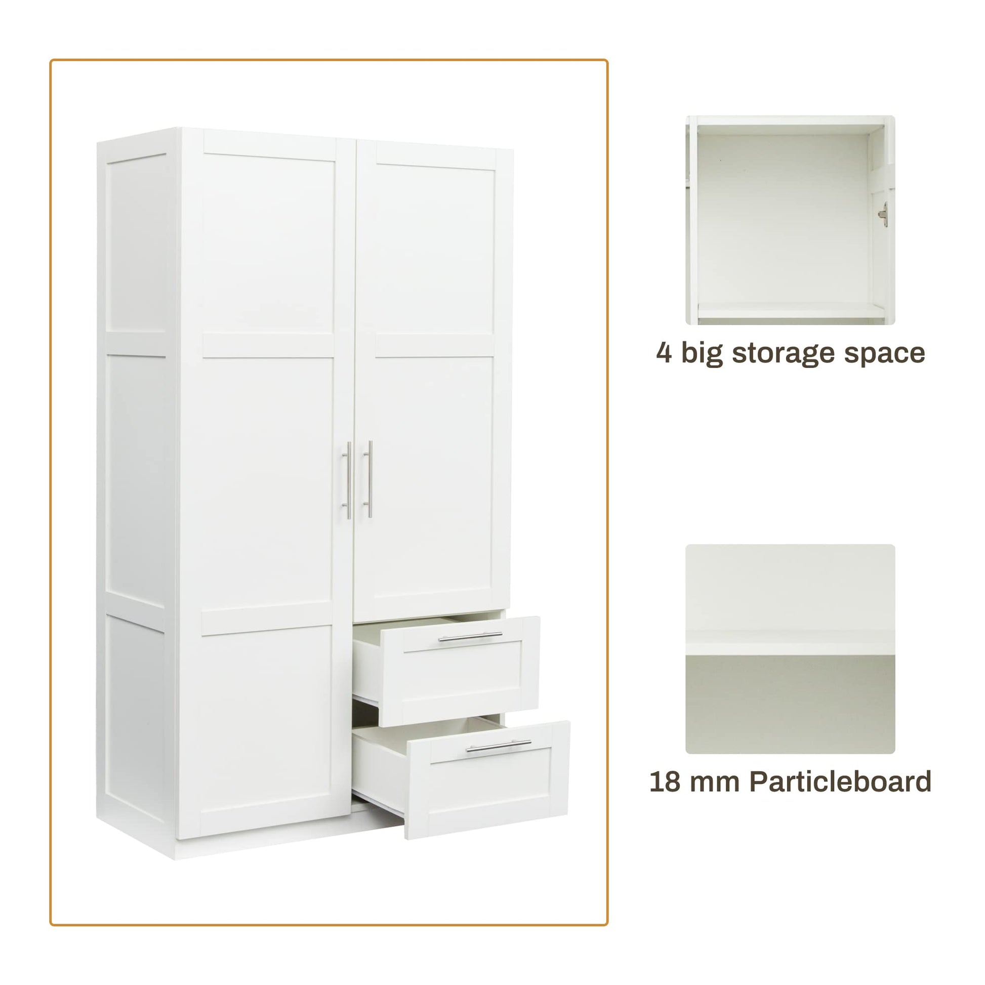 White Two Doors Two Drawers Big Wardrobe Closet Bedroom Armoires