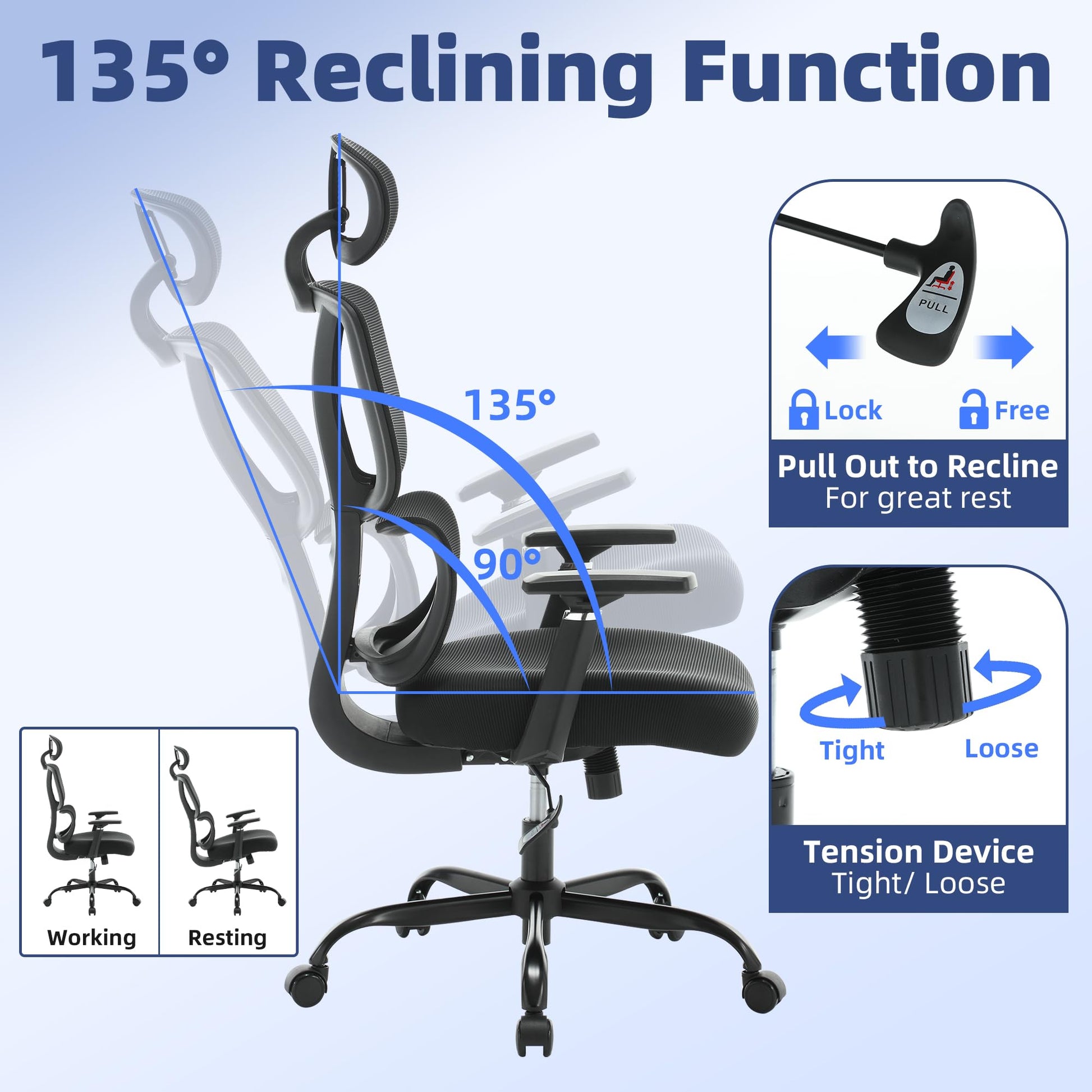 - Install the high-back mesh computer chair quickly and easily with the included detailed instructions. The 360°pulleys move smoothly and effortlessly, making it an ideal gift for family or friends on birthdays, Thanksgiving, or Christmas