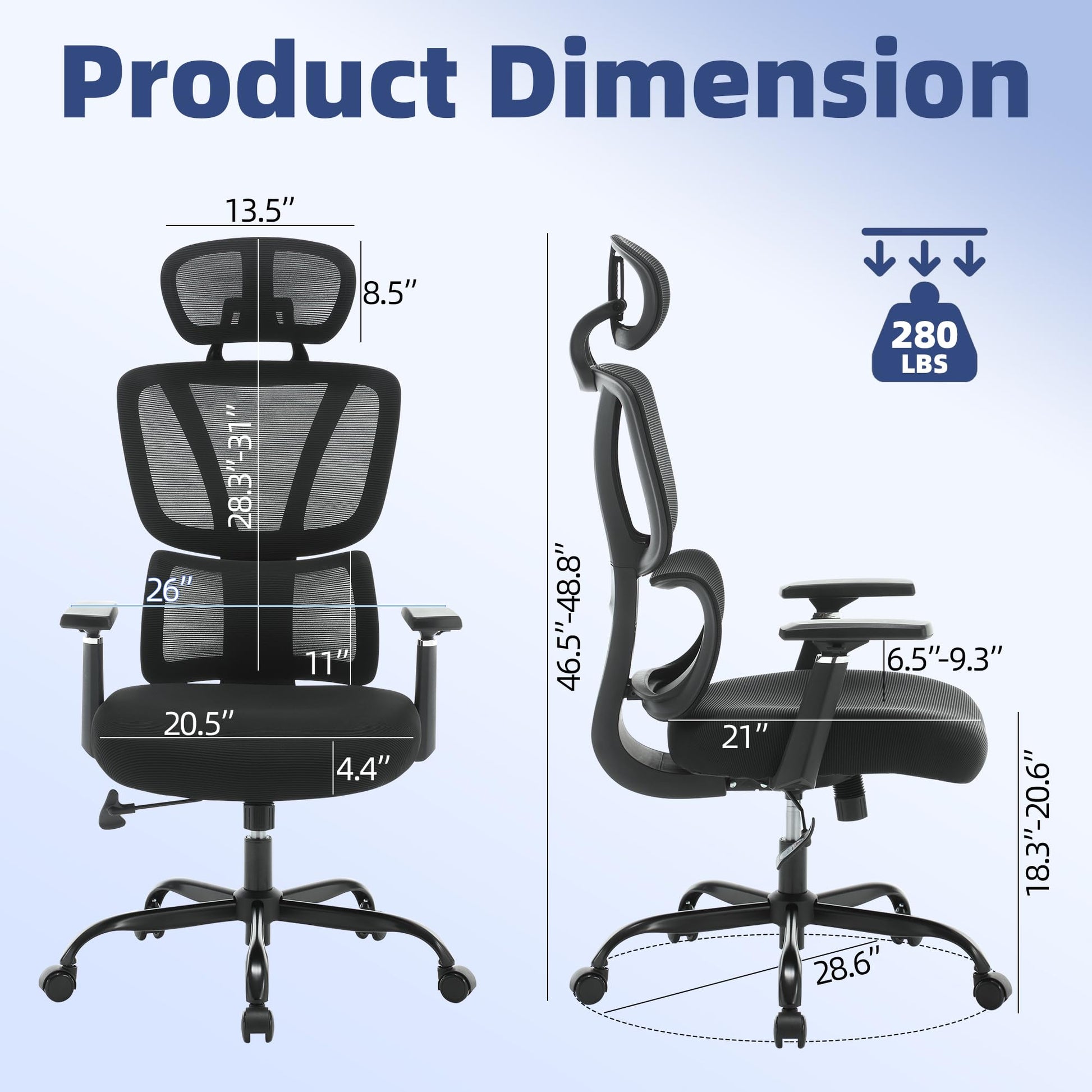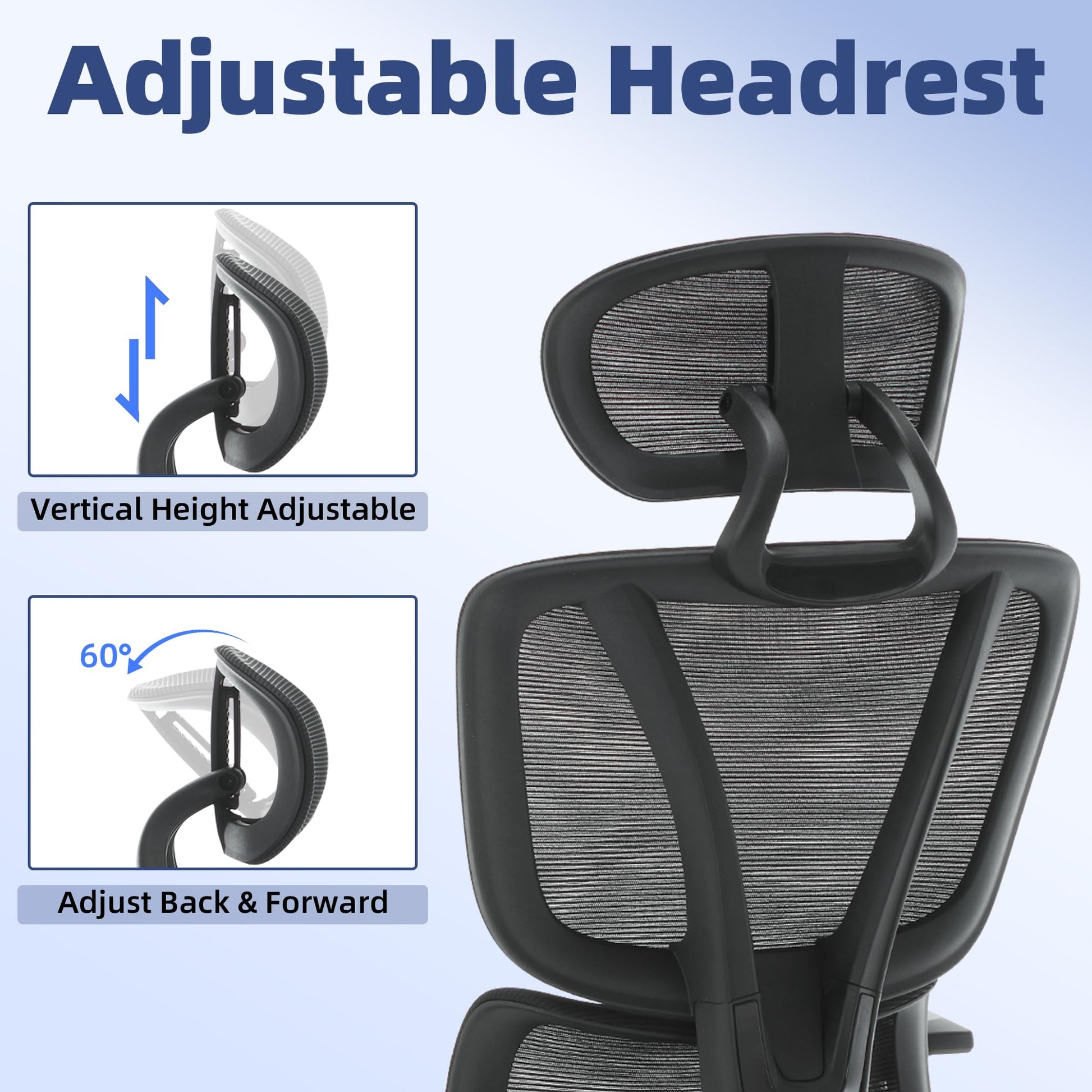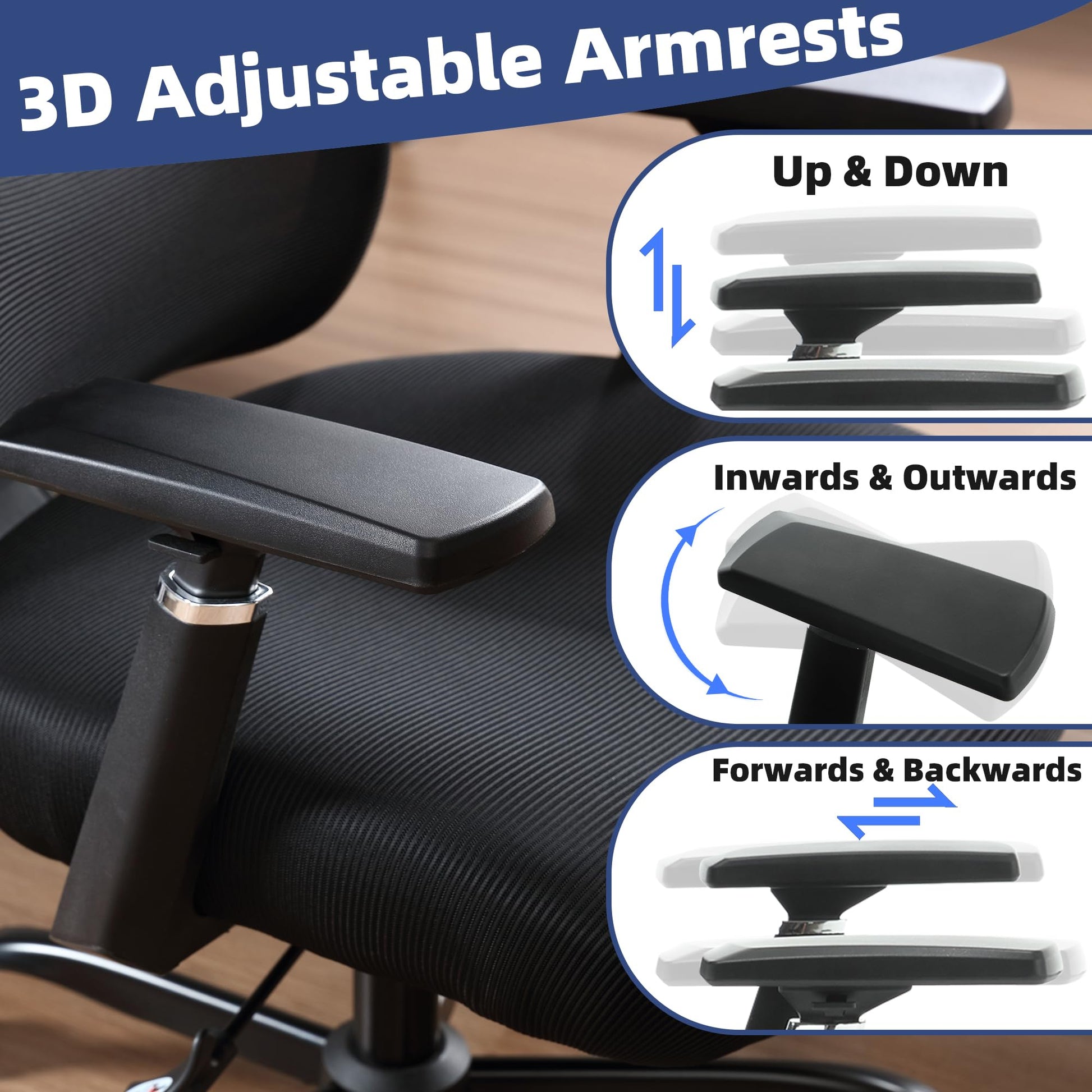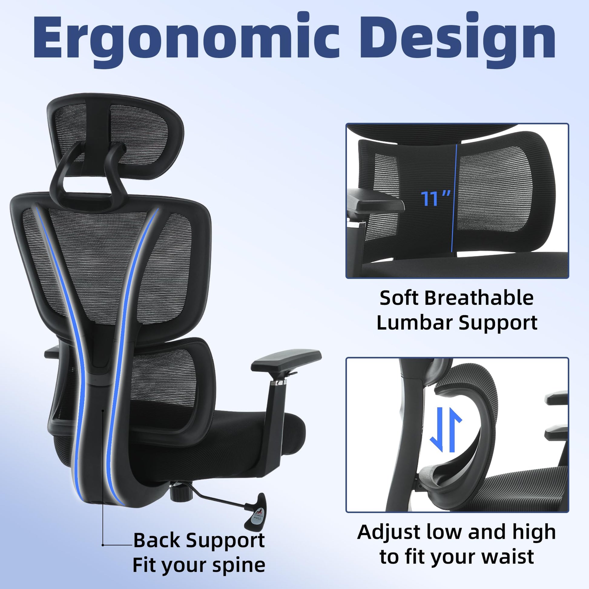 - This ergonomic chair offers ultimate comfort with its bionic curve backrest and 2.3-inch adjustable headrest, ensuring proper posture. The wide lumbar support effectively relieves lower back pain, while the 3D armrest provides steady arm support with adjustable height, pivot, and shift functions