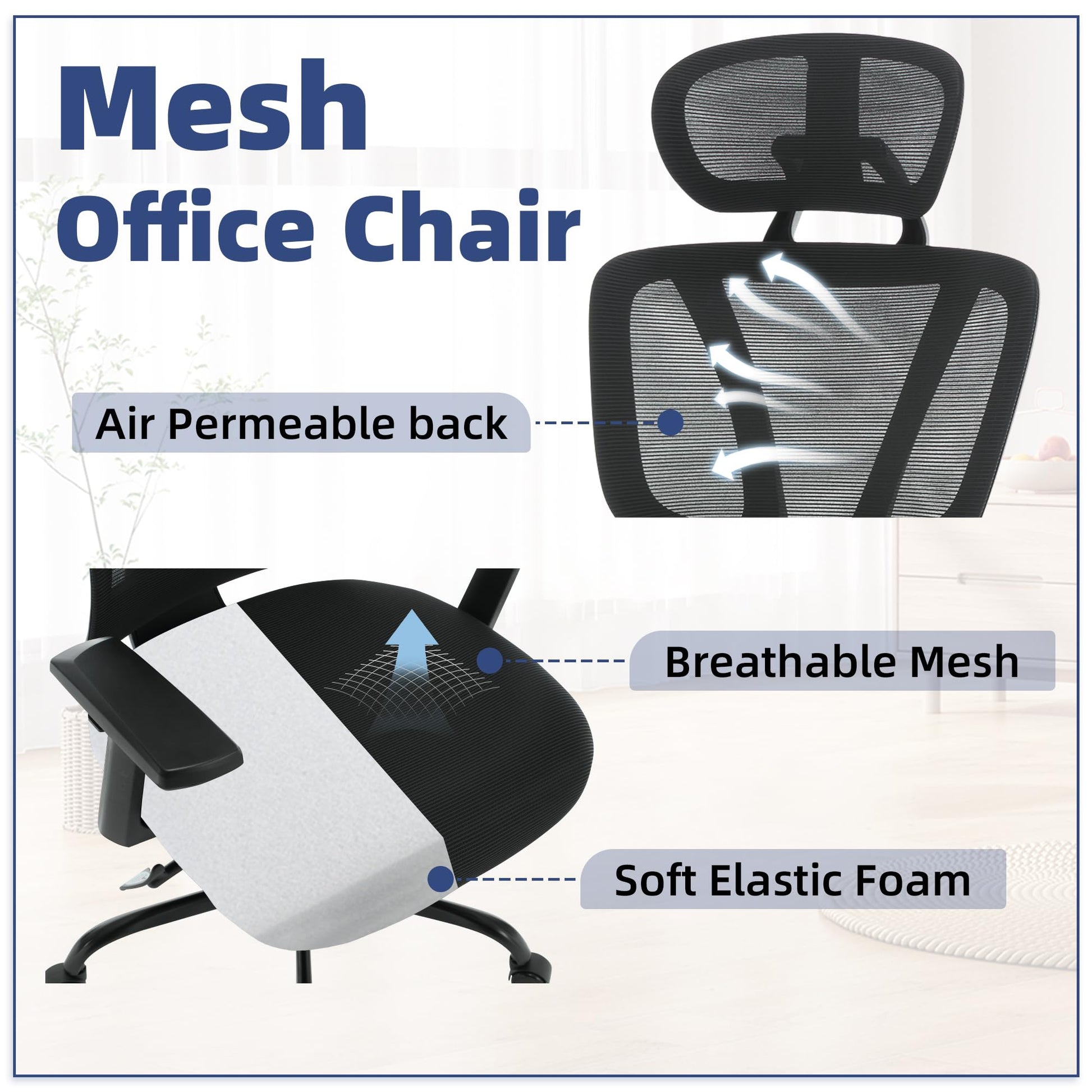 Home Office Ergonomic, Executive Mesh Office Desk Chair with Wheels, Swivel Computer