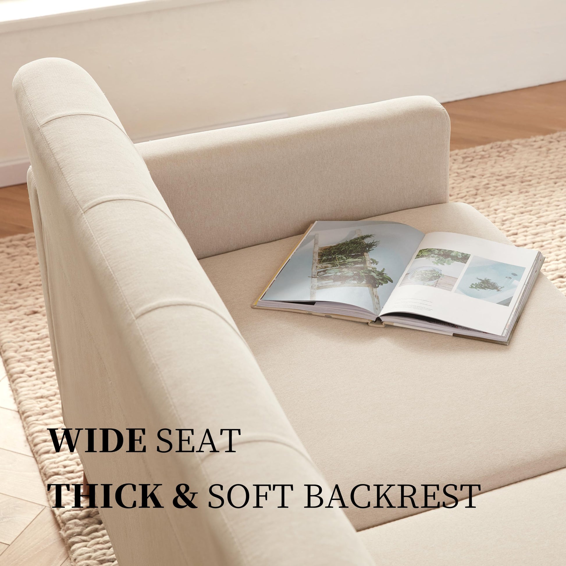- Comfortable & Luxrious Spacious seating of the loveseat sofa provides plenty of lounging space. Soft backrest and high-density foam cushions of the love seat make it comfortable for long hours of sitting and lying down. The sofa couch has a classic look paired with soft linen fabric, creating an immersive and cozy space that is perfectly embedded in your dream home!