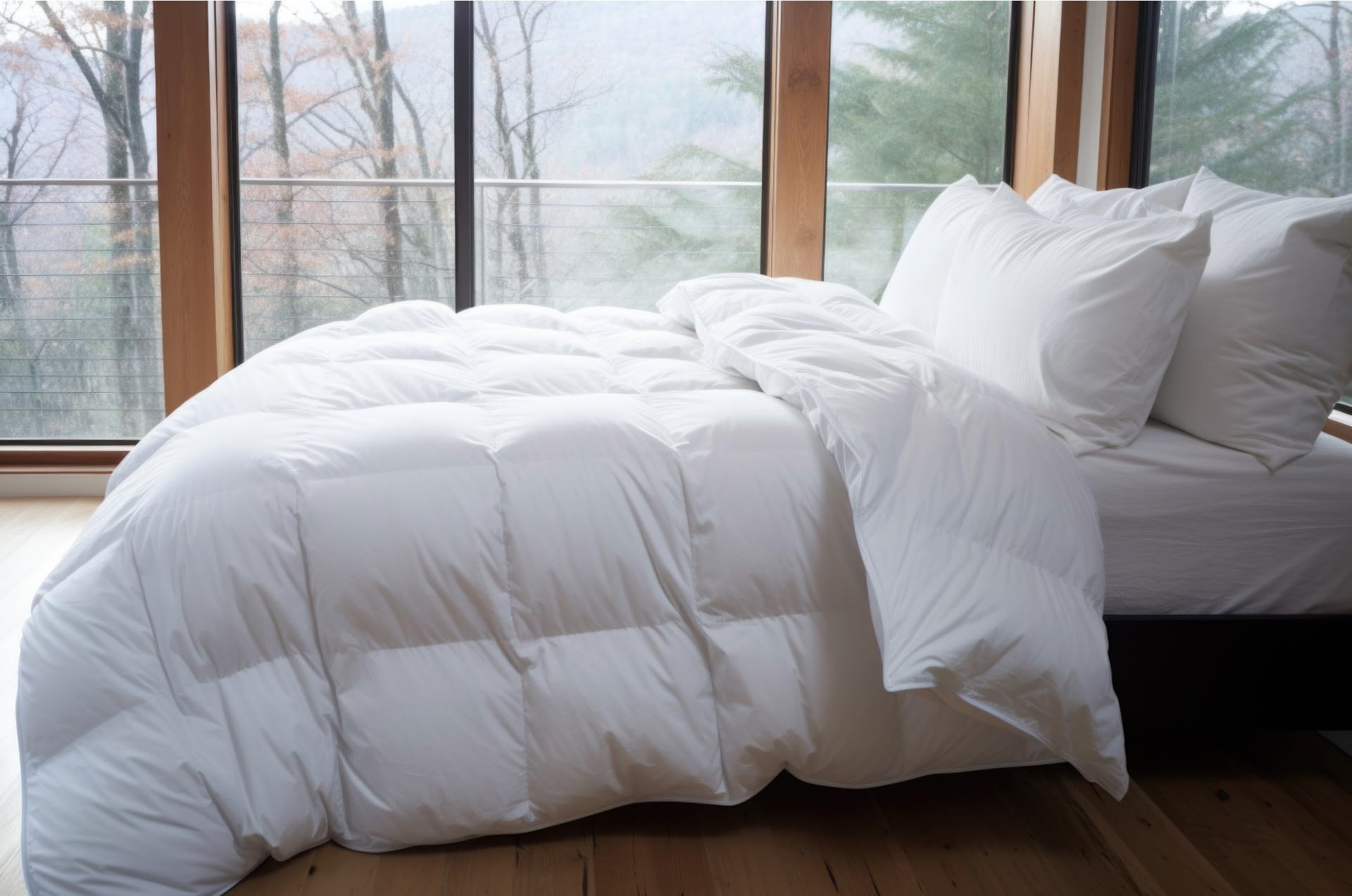 - All Season Down Comforter: Our down comforter is filled with premium white goose down and feathers, providing exceptional insulation and breathability for year-round comfort. The down comforter is lightweight and fluffy, yet provides ample warmth and insulation to keep you cozy on cold nights.