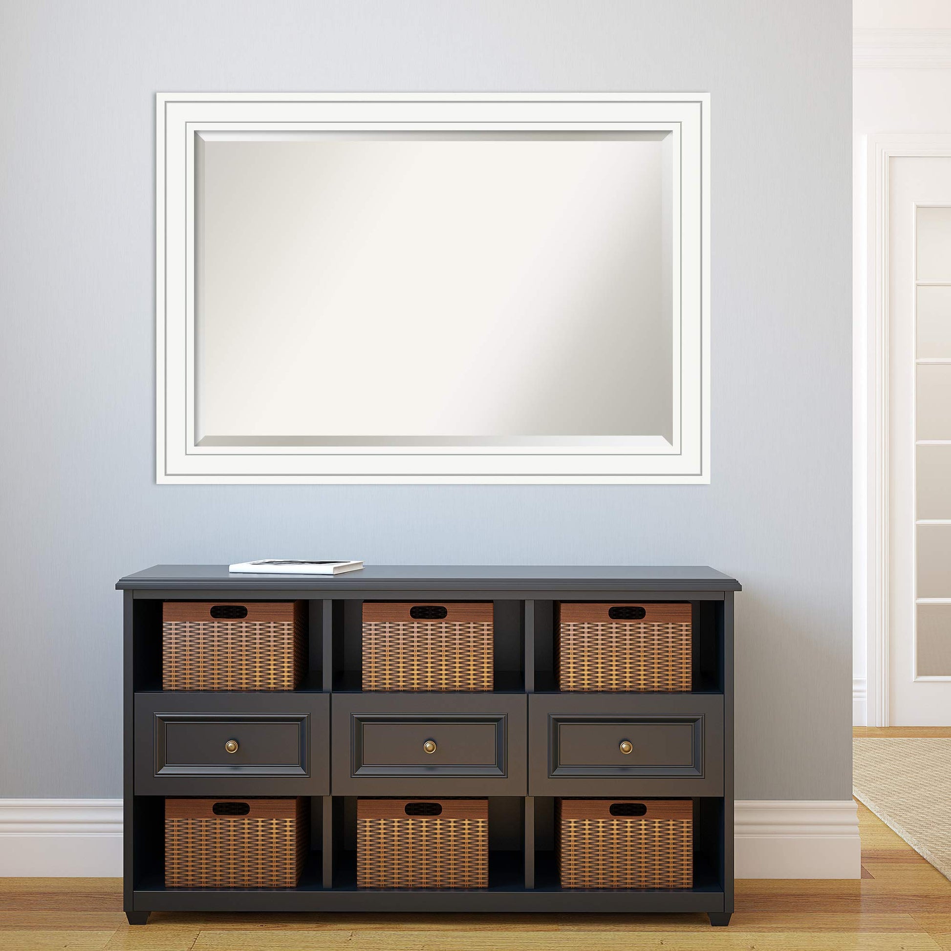 This versatile mirror works beautifully in multiple settings: bathroom vanity areas, living room accent walls, bedroom dressing areas, hallway entryways, or powder rooms. The neutral white frame seamlessly integrates with farmhouse, coastal, traditional, and contemporary interiors.