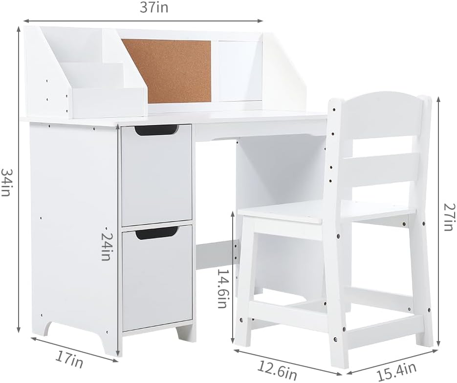 - Perfect Size and Weight Capacity: The study desk measures 40 "(H) X 38"(L) X 18"(W), while the chair measures 27" (H) X 15" (L) X 13" (W). Both are designed to hold up to 100 lbs, making them perfect for young children aged 3-8 years old.