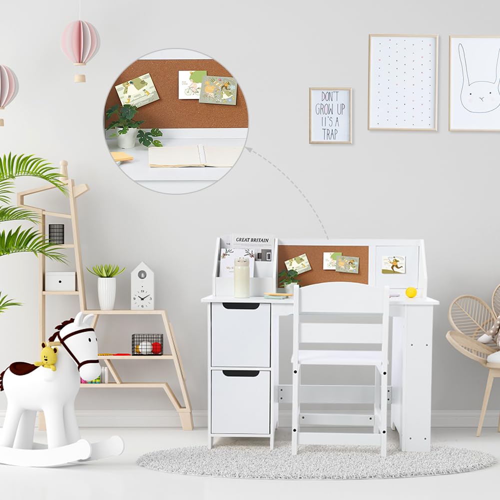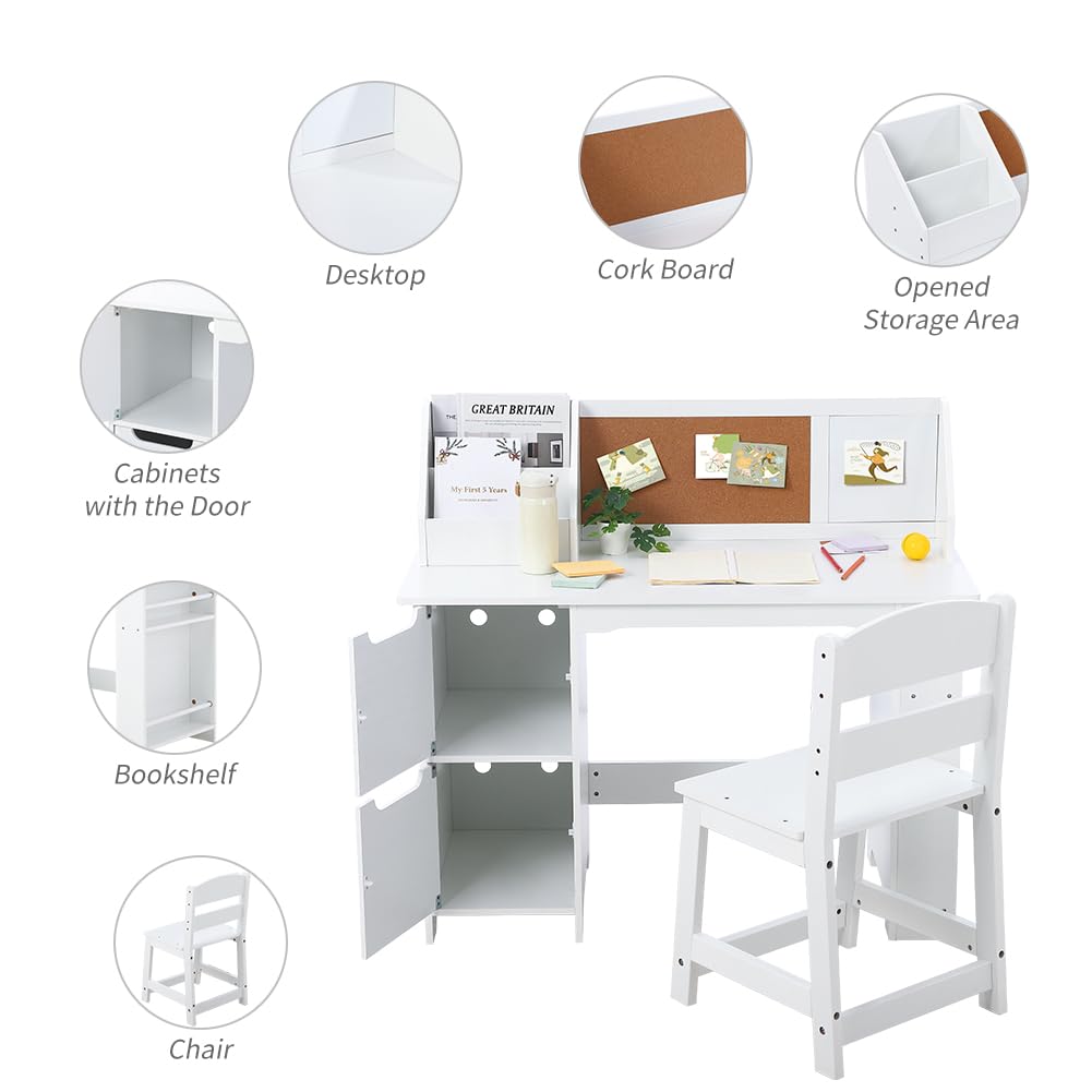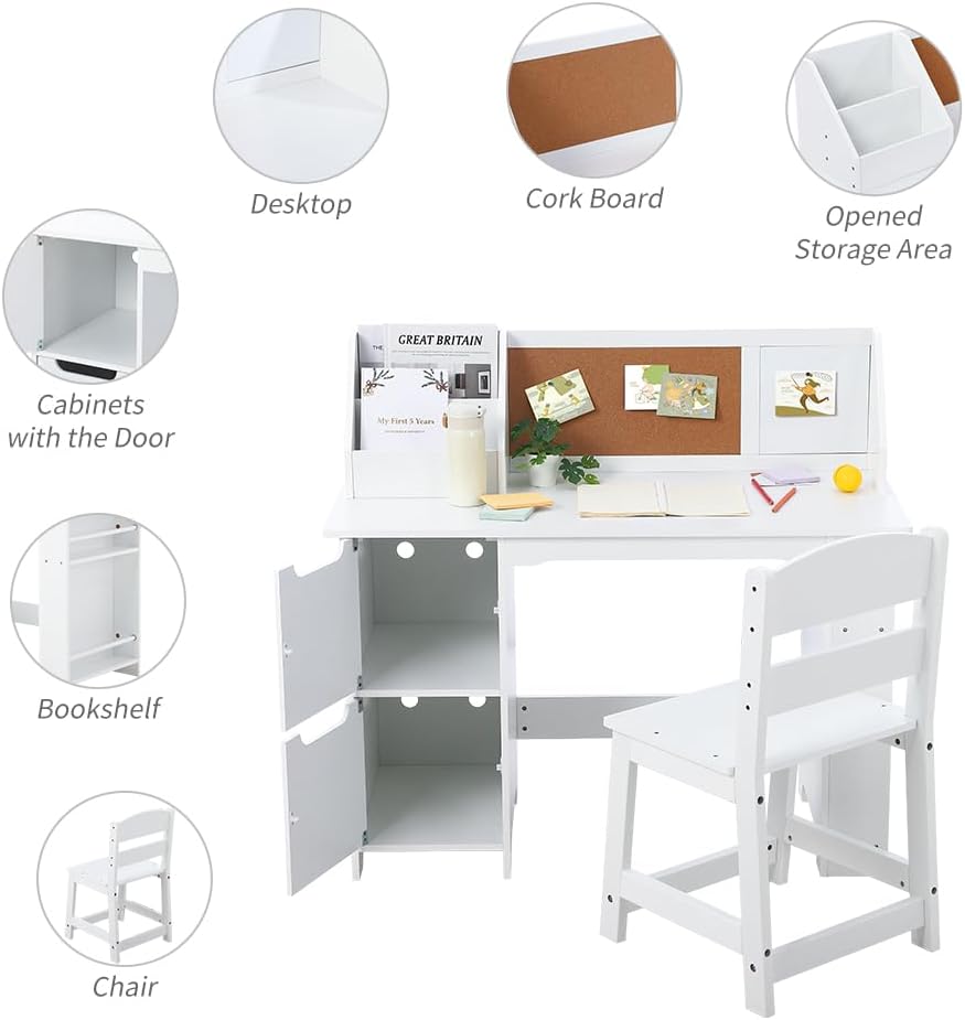 chair Set with Bookshelf, Bulletin Board, and Cabinets - Ideal for Boys and Girls Ages 3-8