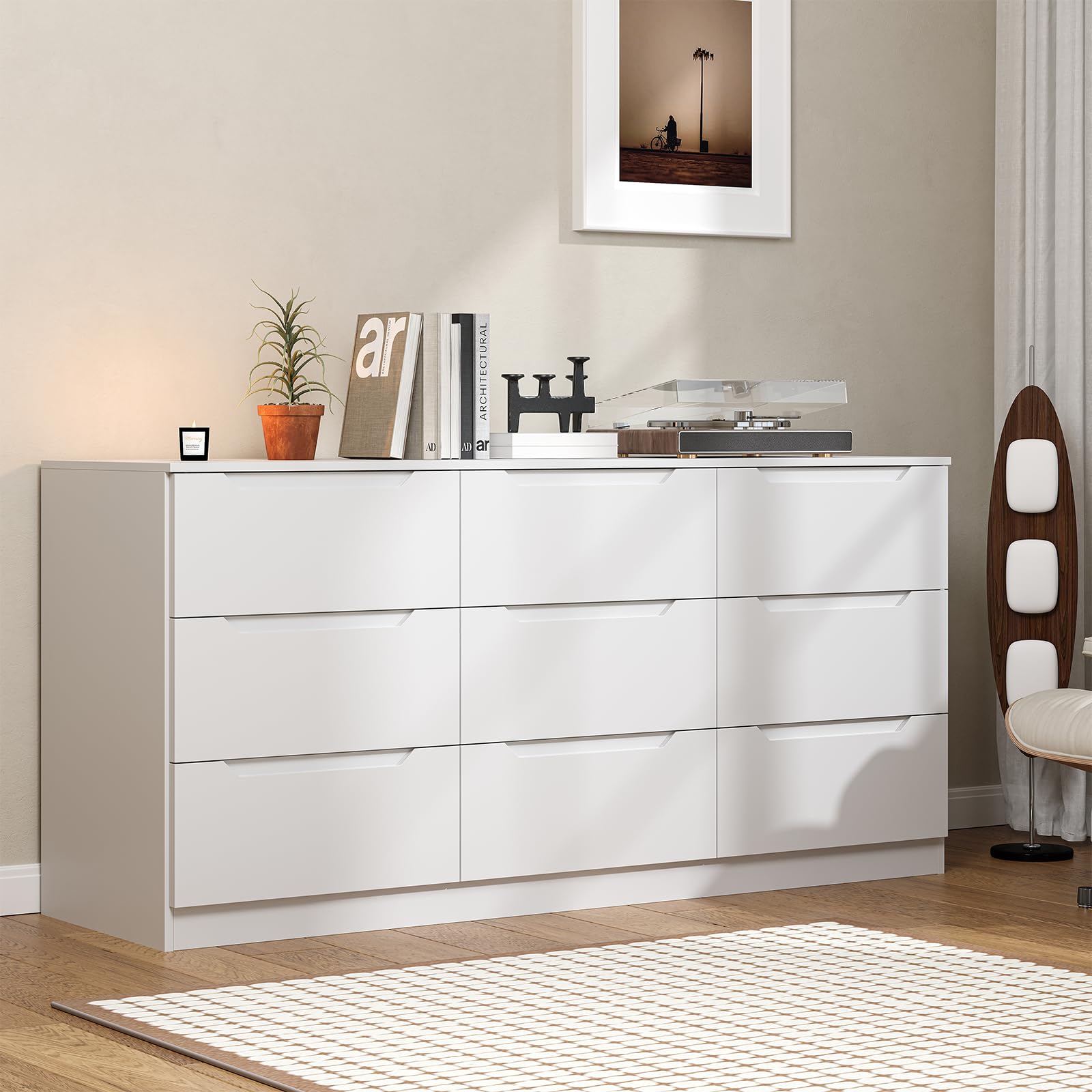 9 Drawer Dresser,62” Wide Chest of Drawer Dresser, Modern Storage Cabinets