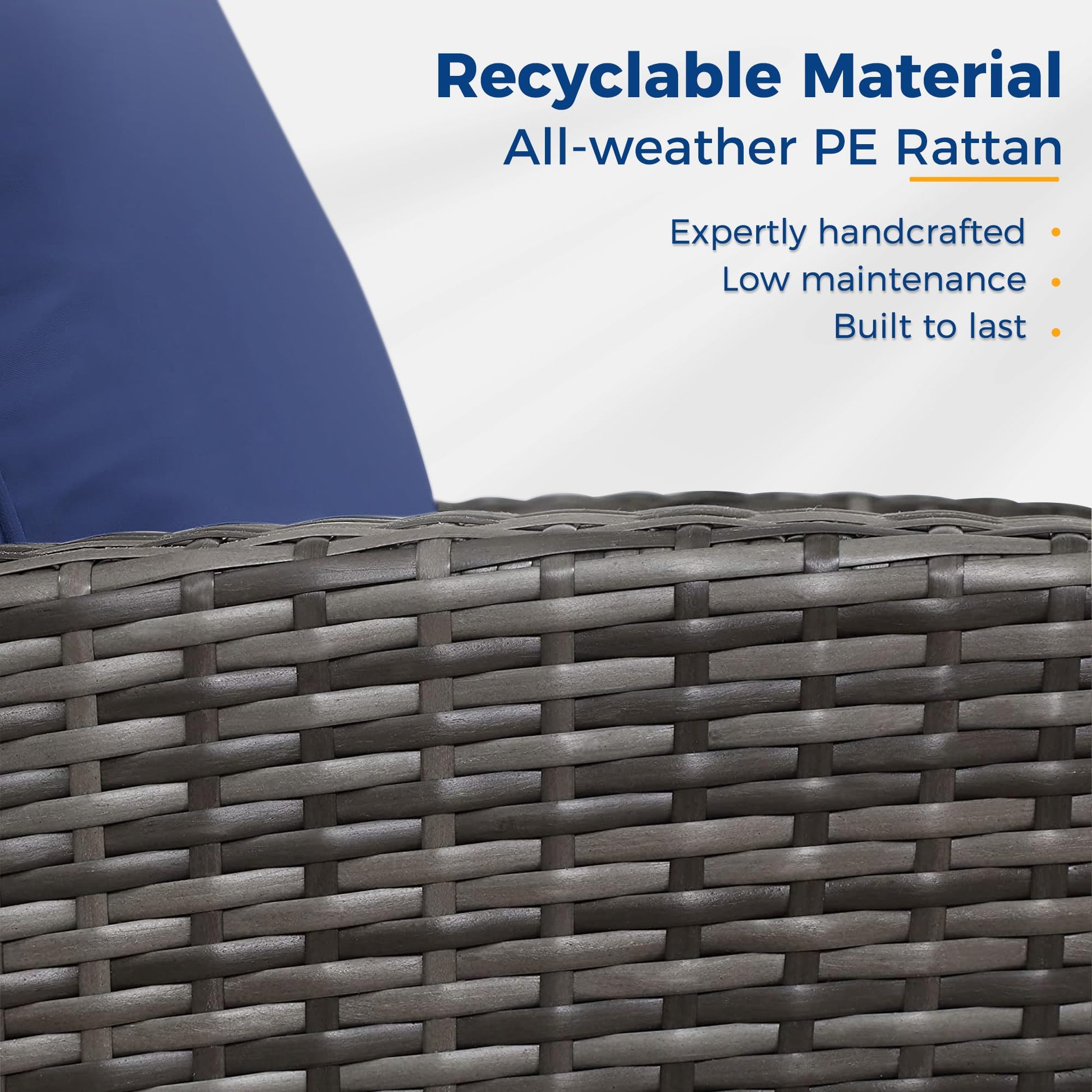 - Durable and Long-lasting Outdoor Patio Furniture Experience the durability and reliability of this 4-piece patio furniture set. Crafted with premium PE rattan and a sturdy powder-coated steel frame, it is built to withstand any weather condition, ensuring years of outdoor enjoyment. Whether you have a balcony, lawn, garden, or poolside, this set is perfect for all outdoor spaces.