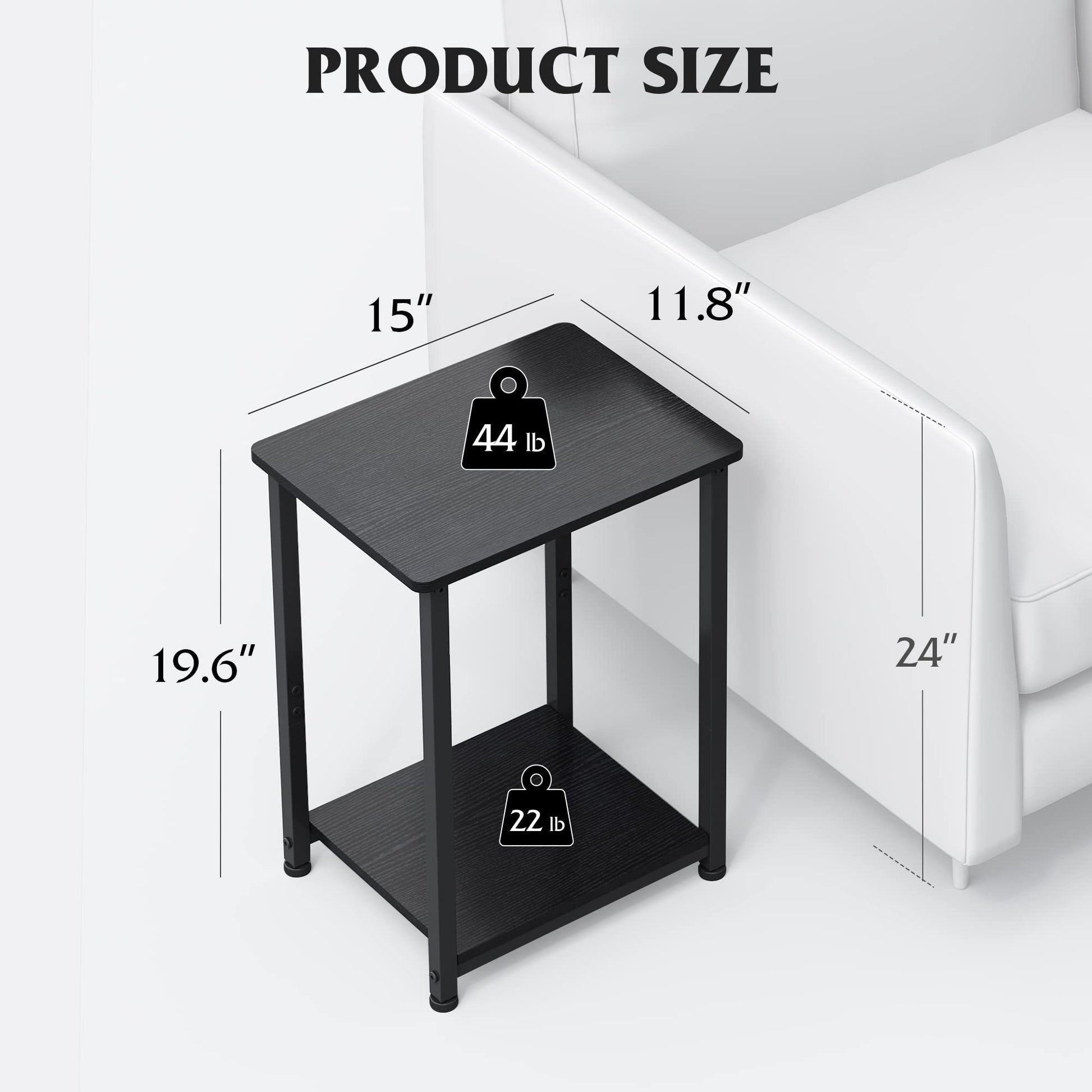 - The sofa side stands with a double-layer open storage shelf has enough space, thanks to the spacious open lower compartment, which will make it an excellent end table for coffee, magazines, books, and other daily necessities.