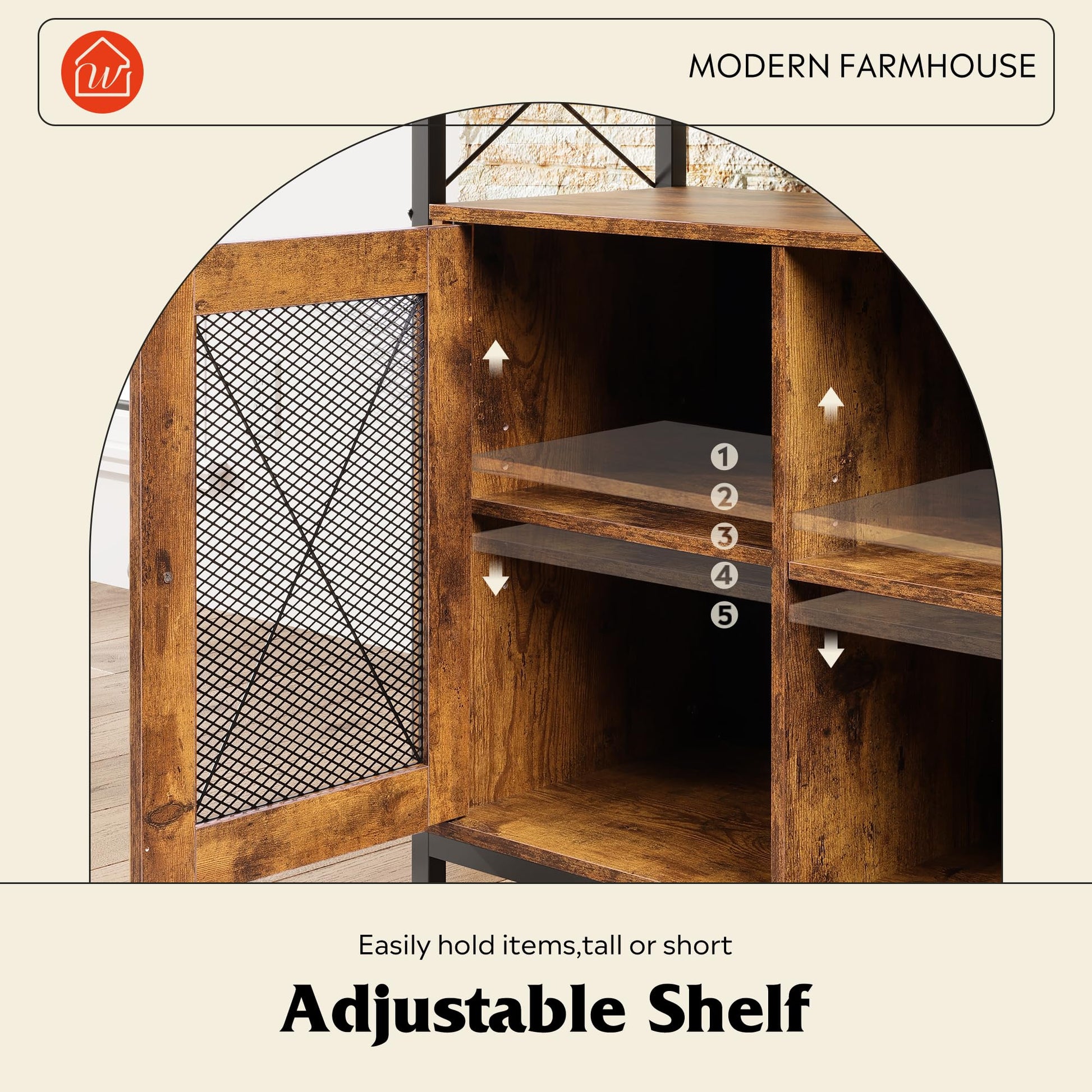 - 5-Level Adjustable Shelf The shelves of the TV stand can not only be adjusted to suit different heights, but also can be disassembled for custom storage, you can adjust it according to the size of your media equipment.